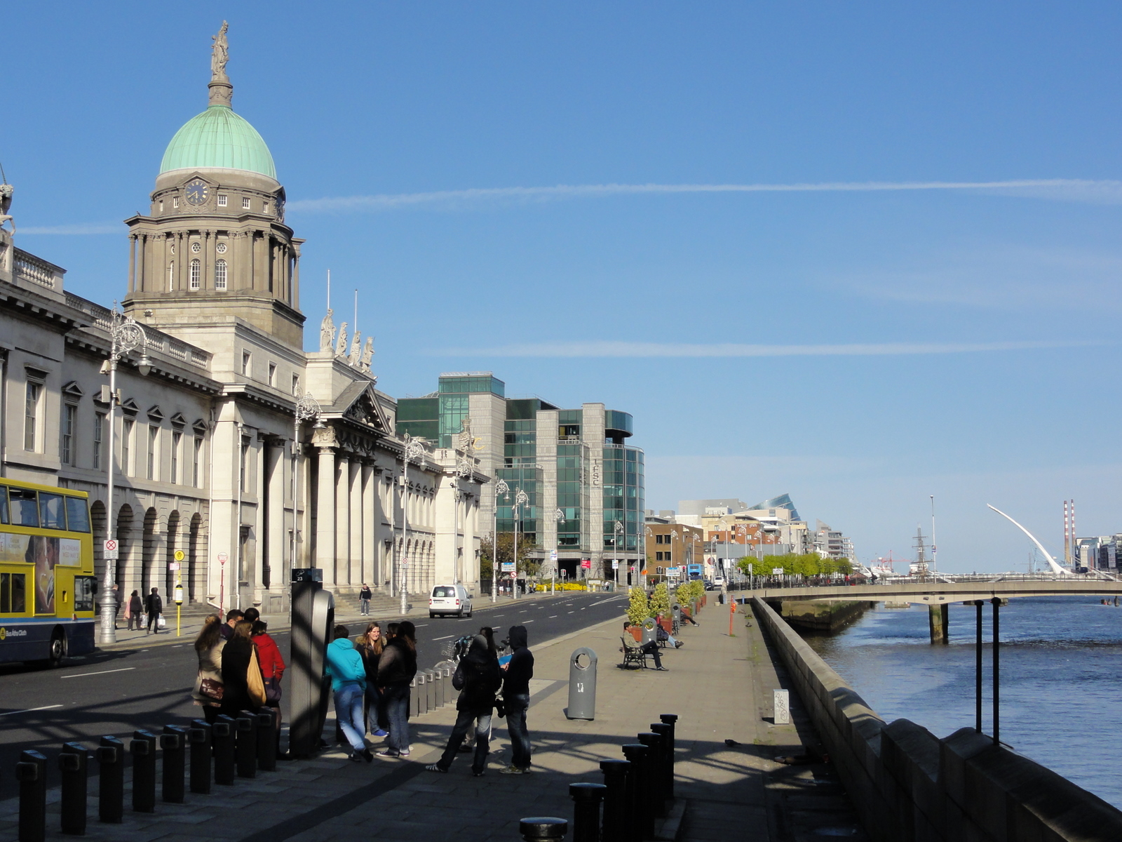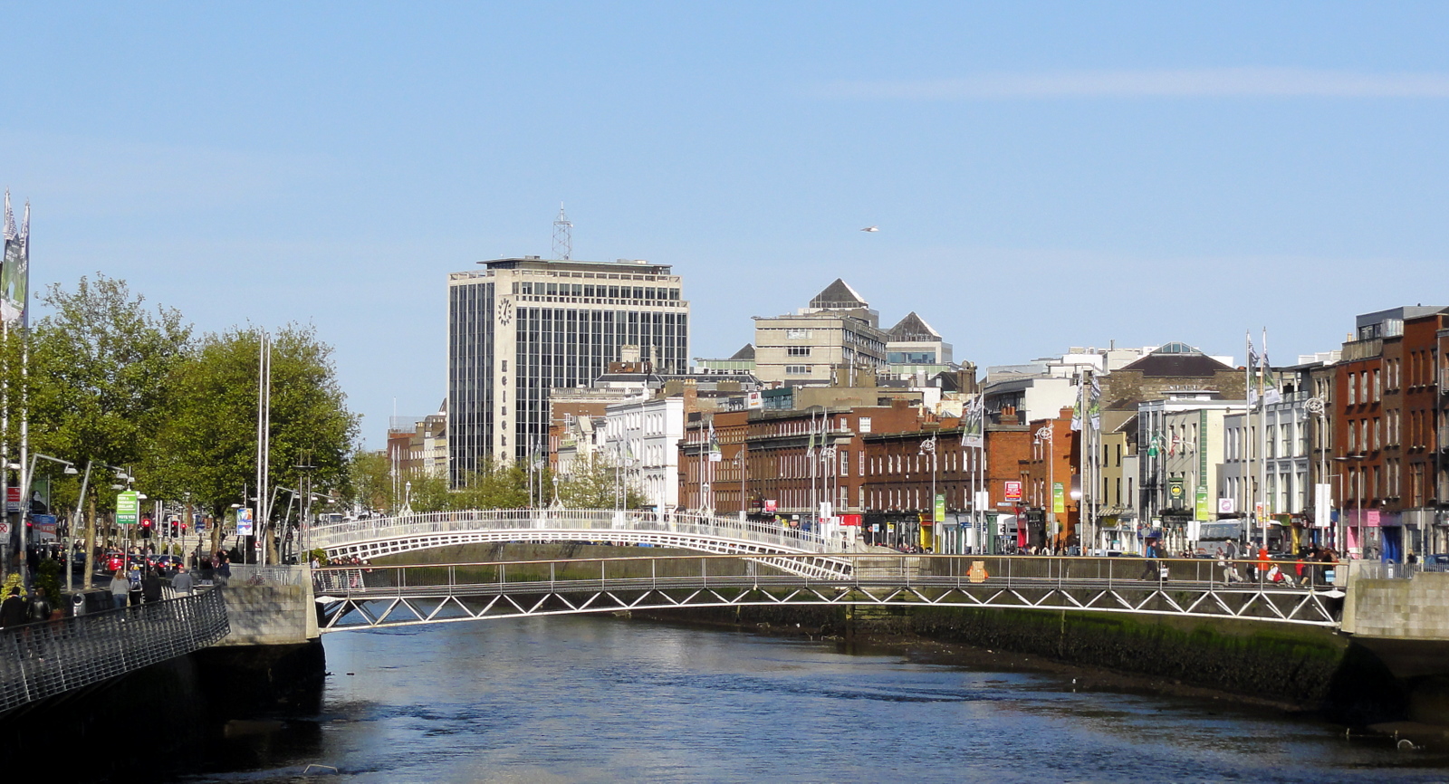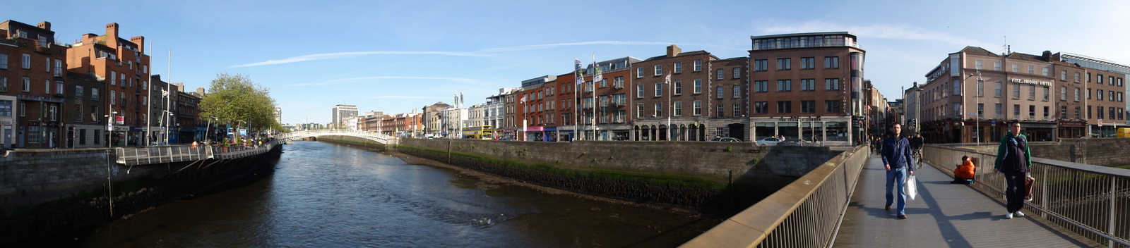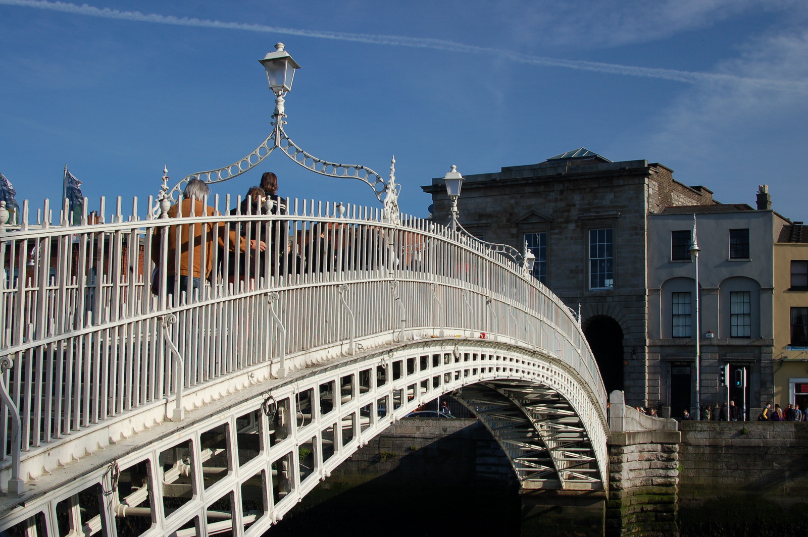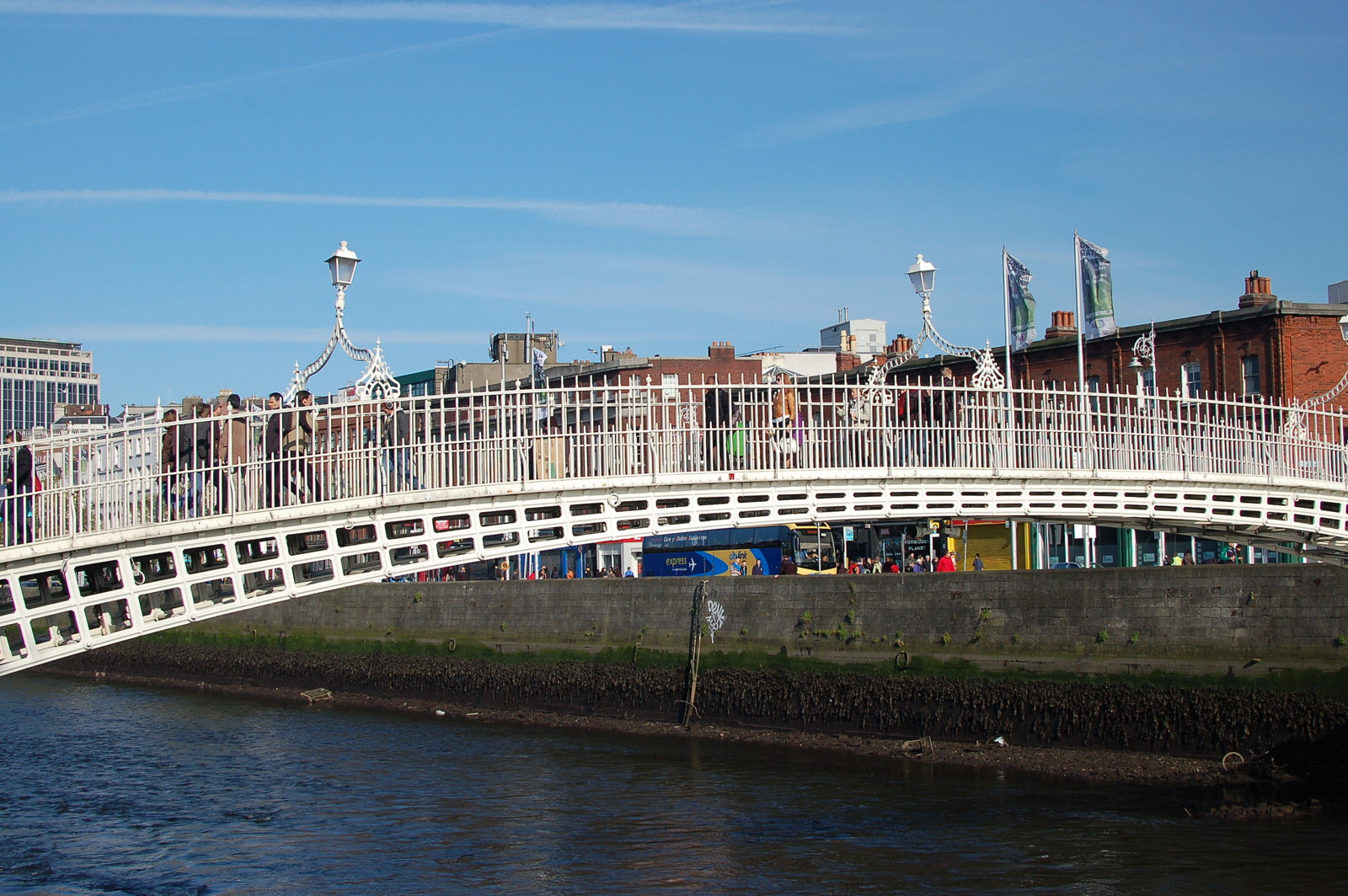 pornesc pe mal la dreapta până dau de podul cel mai cunoscut, Ha’penny,