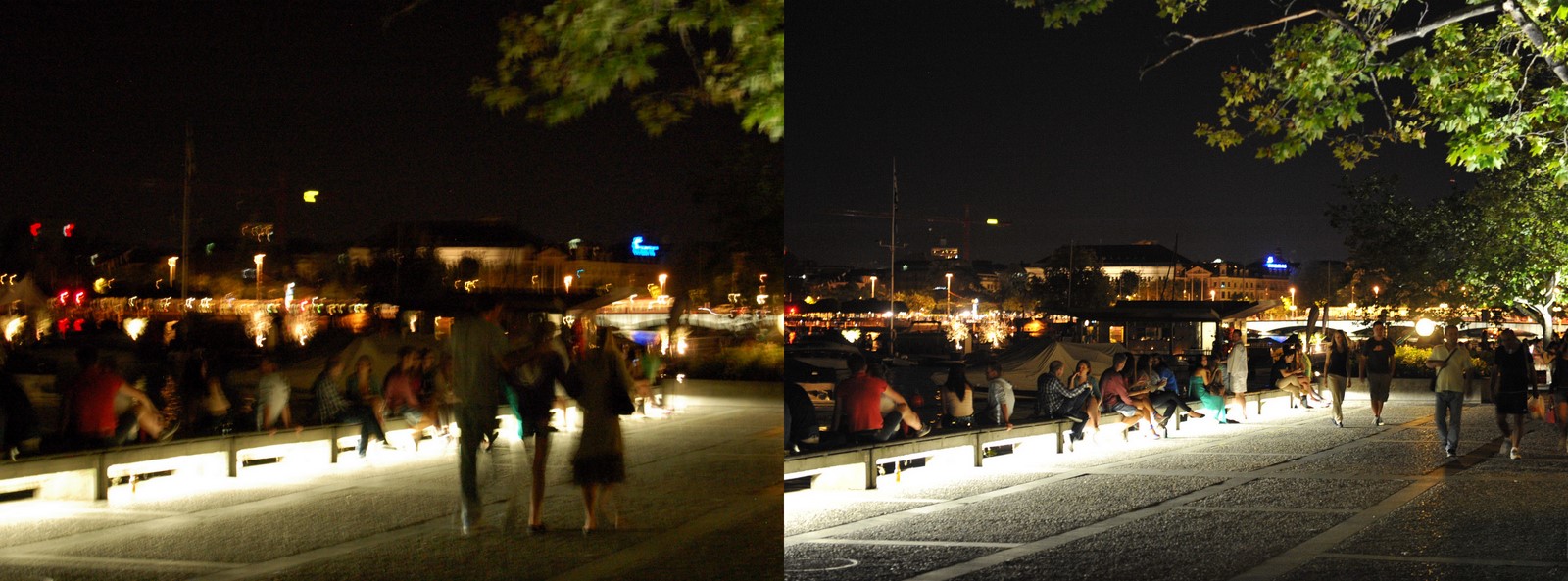 Până am ajuns înapoi și în stare de funcționare s-a lăsat întunericul, așa că primul test va fi nocturn. Planul a fost să merg pe jos o bucată, folosind obiectivele de 24-70 pe D700 și echivalentul aproximativ de 18-55mm pe al meu Nikon D50, iar la întoarcere să folosesc obectivele fixe de 50mm respectiv 35mm, tot oarecum echivalente dat fiind cropul pe DX.