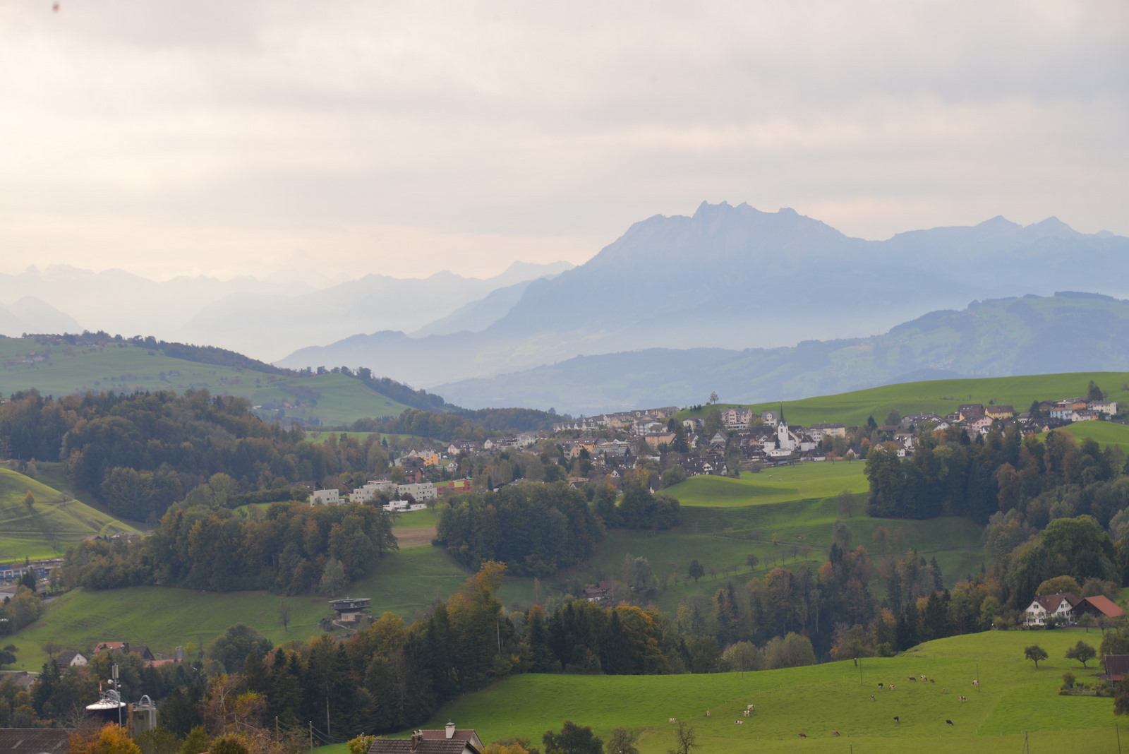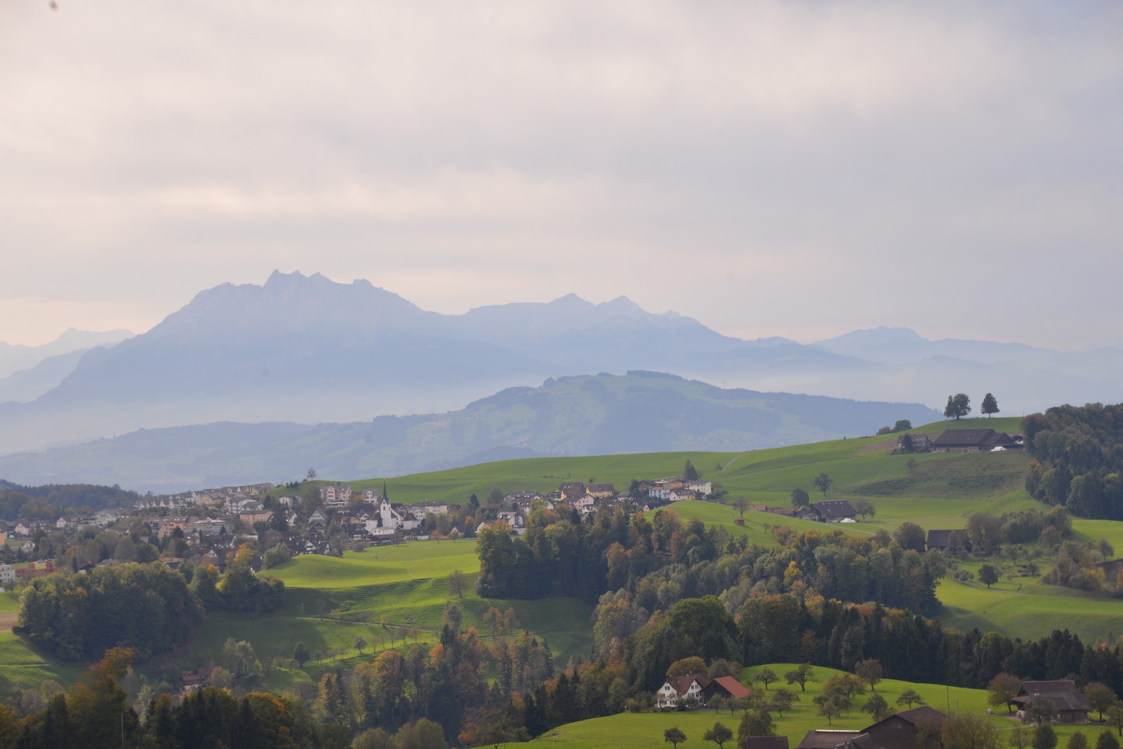 A doua zi duminică a venit și ziua testului peisagistic pentru D600. Am luat tot harnașamentul, plus D50ul, plus trepiedul, călare pe motoric, și am ales dealul Hirzel, sperând să prind o zi cât de cât clară, adică să se vadă munții, și cu ceva soare dacă se poate săr’na.