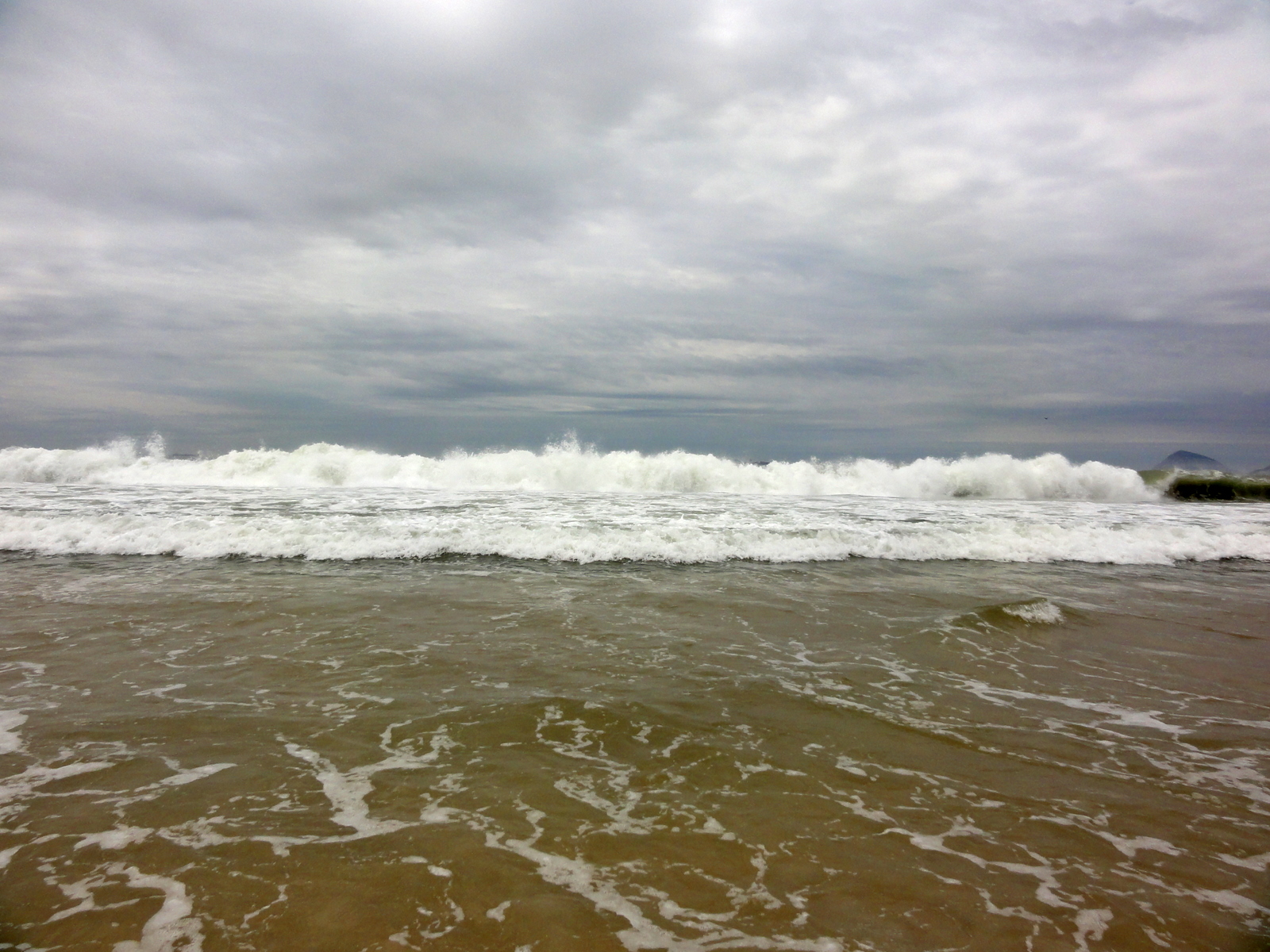 Aaa, deci trebuie să intru cu picioarele în Atlantic puțin. Stau pe nisipul ud o vreme, dar nu vine nici un val. Se sparg frumos,