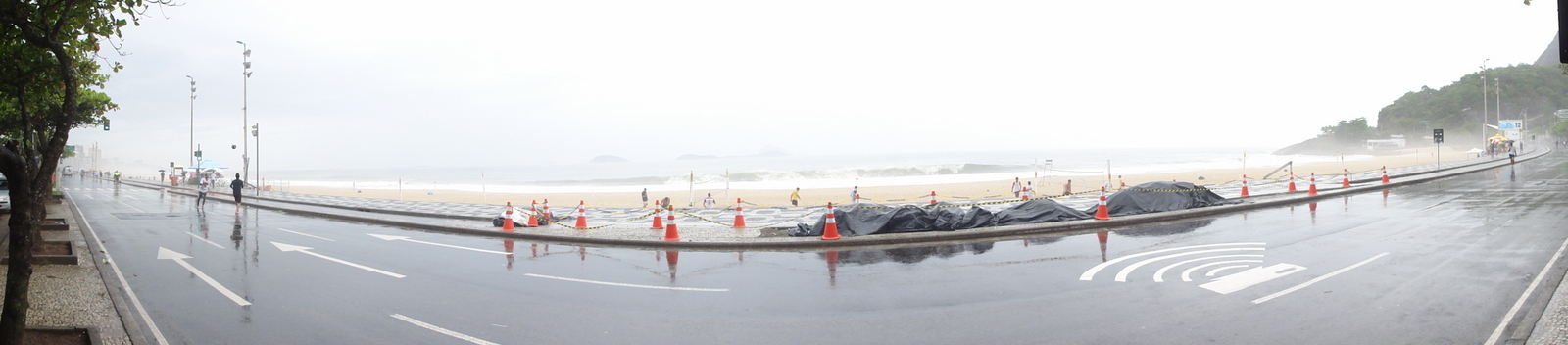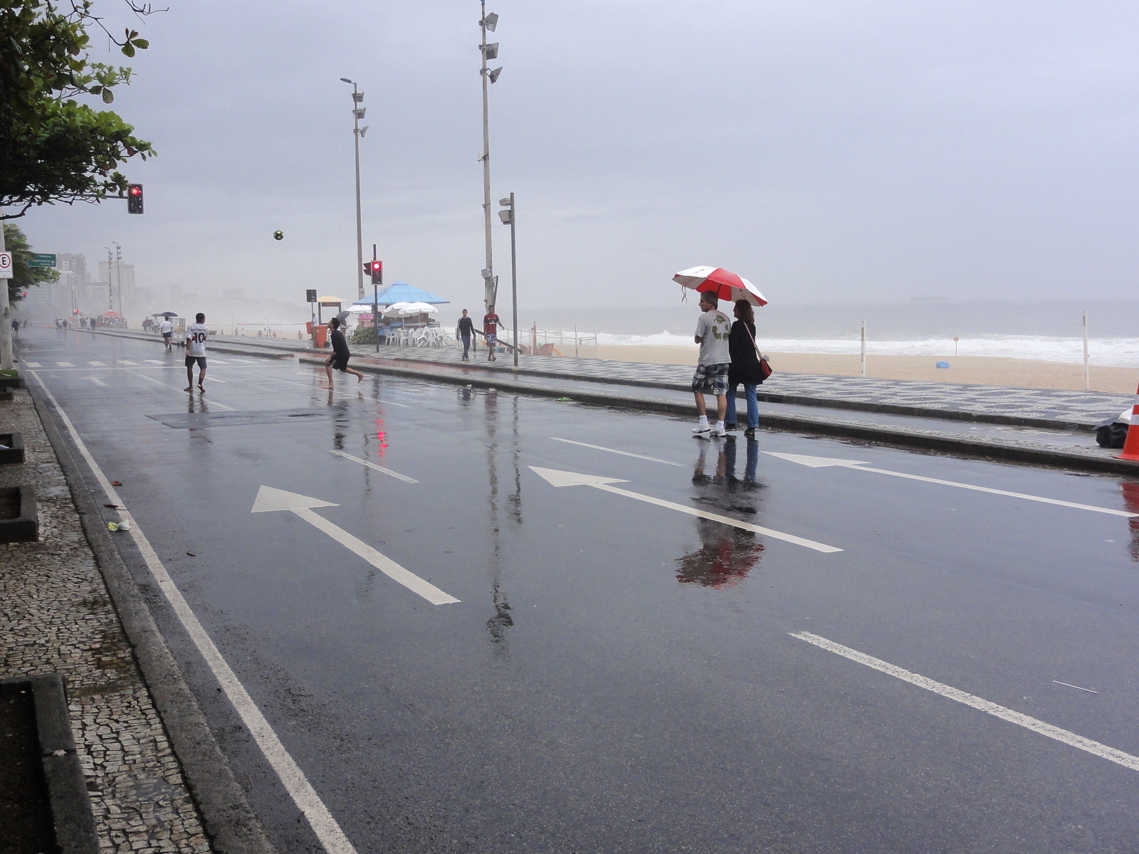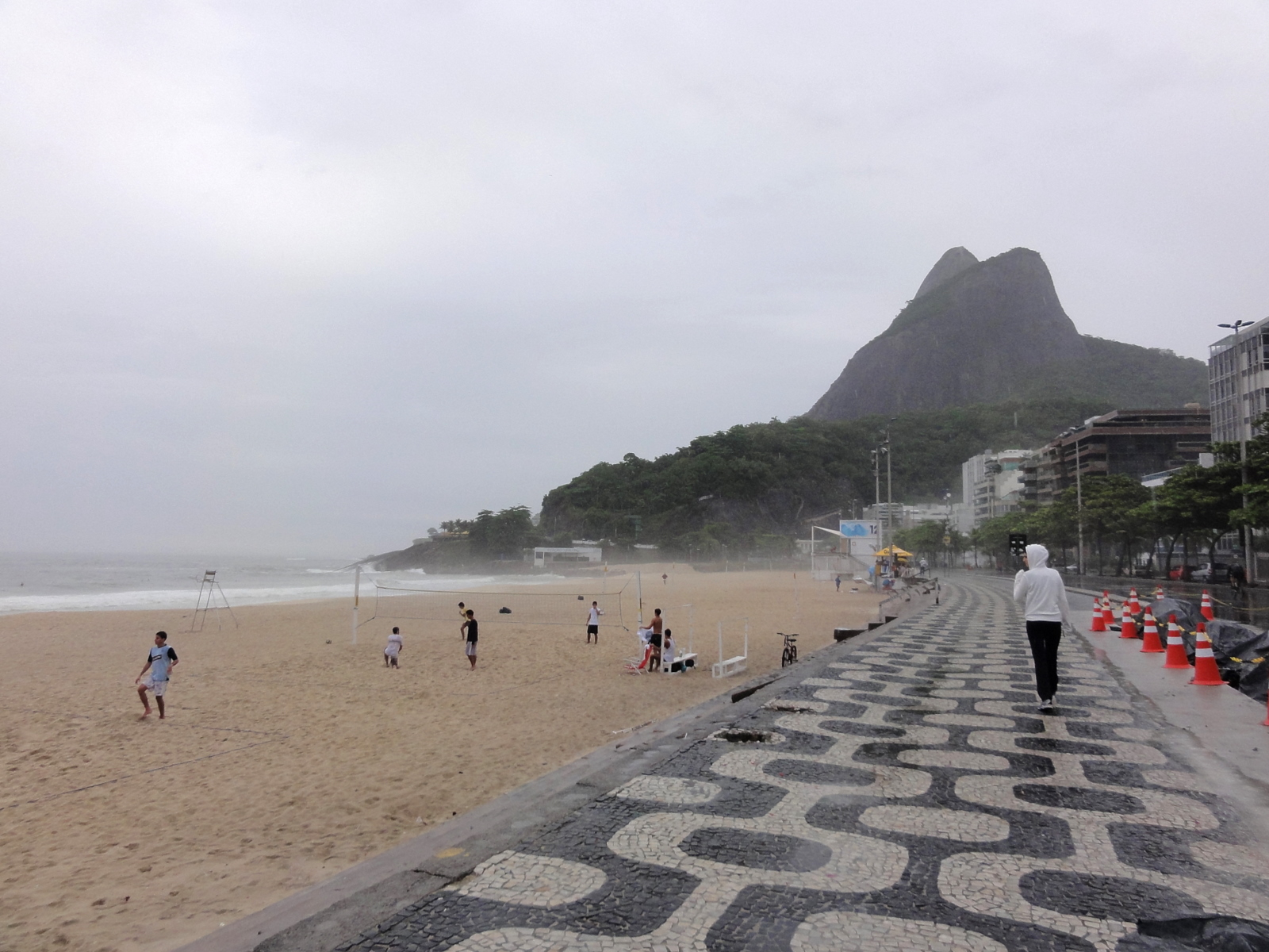 Plouă tot mai tare, încet-încet încep să consider că am mers destul, e cazul să mă îndrept din nou spre plajă și să fac cale-ntoarsă. După hartă trebuie că am ajuns deja spre capătul lui Leblon. (Înțelesesem că numele vine de la ”le blond”, un francez căruia i-a aparținut zona în secolul 19, dar conform wikipedia pe om chiar îl chema Charles Leblon.)