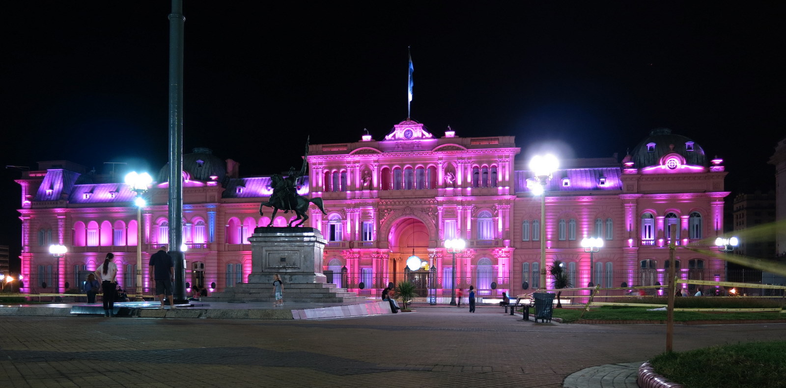 pentru o privire mai atentă. Cum de și-or fi luminat palatul prezidențial în roz? Poate pentru că au președintă? ;)