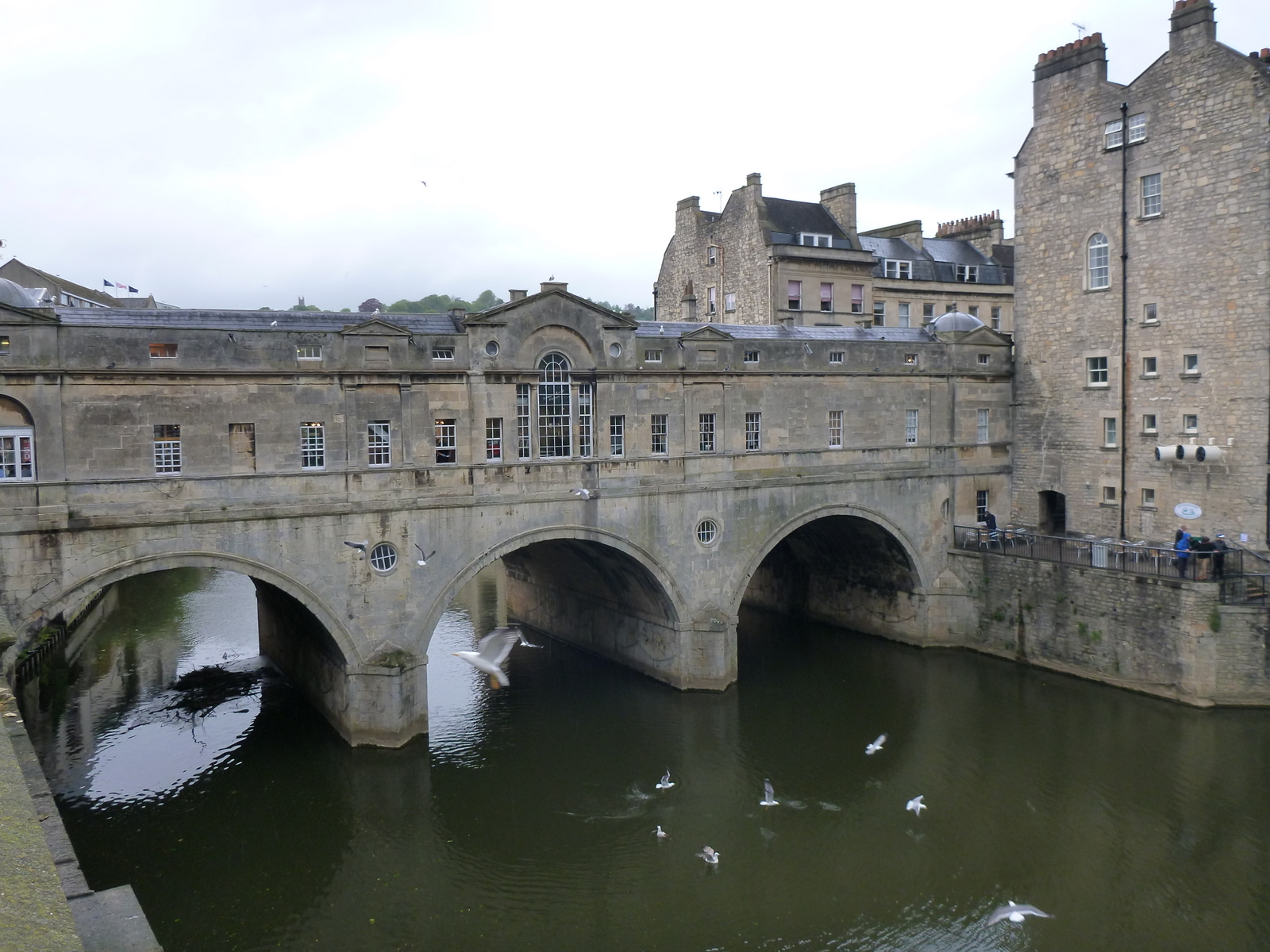 Am petrecut 3 ore la băile străverilor noștri, când am ieșit toate restaurantele erau închise. O chelnăriță în repaus ne-a recomandat mie și la doi turiști chinezi la fel de înfometați un restaurant pe lângă podul Pulteney, Gia’s, care are deschis toată ziua. Bun peștele, bun gemul (a se vedea în poză la ce mă refer). Cu o ultimă privire asupra podului, dacă tot am ajuns acolo, ura și la gară.