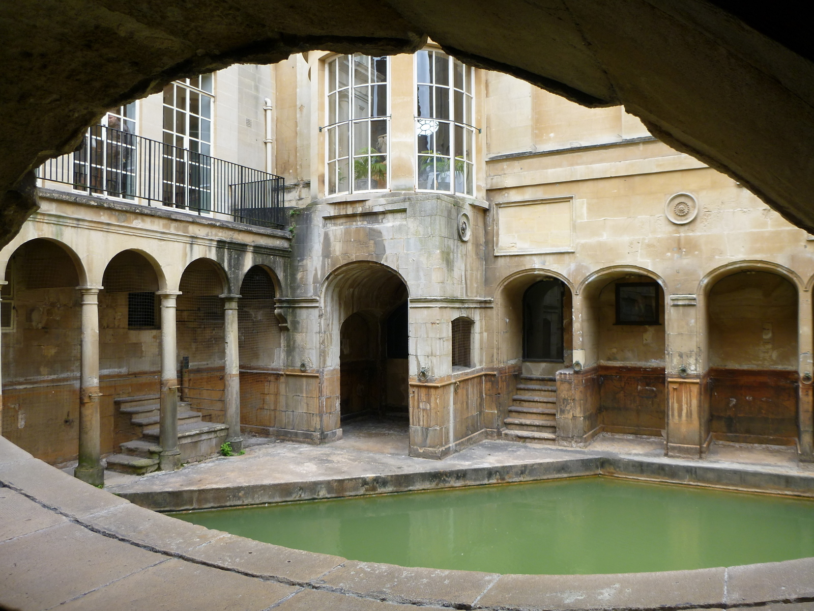 Până să apuc s-o citesc sunt de acord cu Bill – poate cel mai impresionant loc de stat și meditat e în colțul din care se vede bazinul, statuile împăraților romani, iar în spate silueta măreață a Abației. Conștientizezi dintr-o imagine trecerea timpului, a istoriei. Parcurgi apoi simțindu-te parcă mai mic și mai modest camerele, arcadele, sala de restaurant unde se află o fântână cu pești de la care poți bea niște apă caldă minerală, de care toți se minunau cât de rea la gust e – nu mi s-a părut cine știe ce, cam ca la Călimănești-Căciulata.