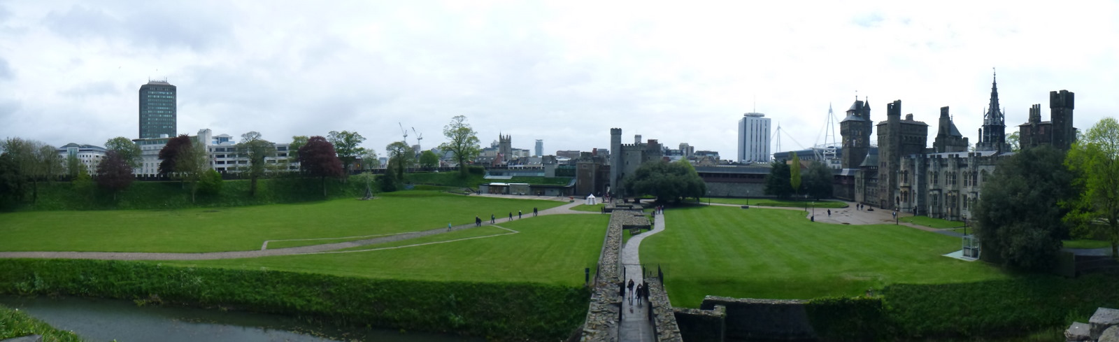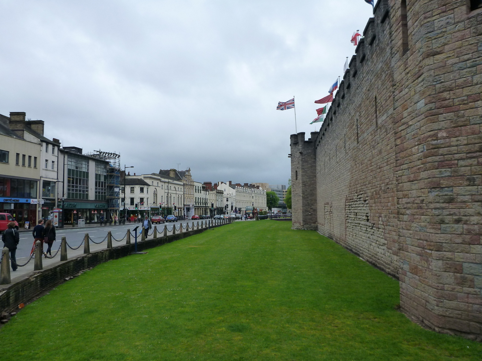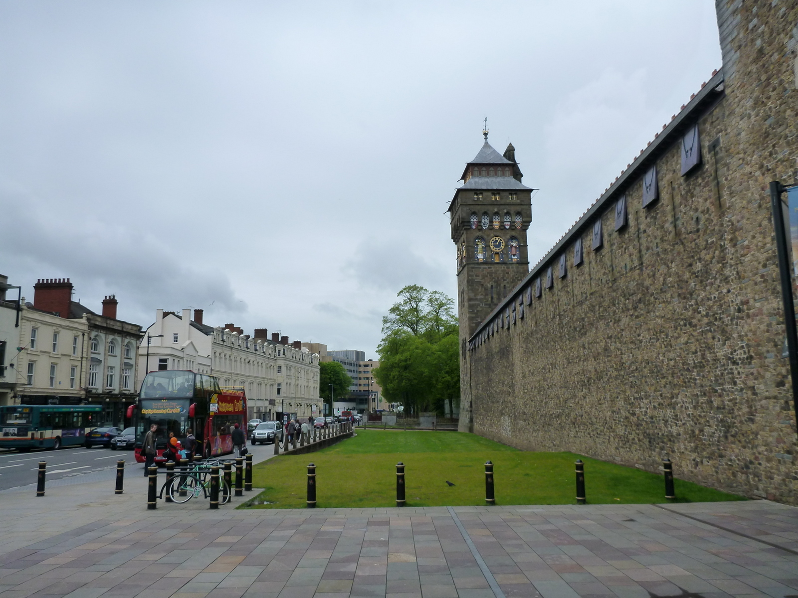 Castelul e fix în mijlocul orașului, lângă centru – perfect plasat. Ca să ajung la el trec prin parc, astfel încât nu-i găsesc intrarea principală, trebuie să fac un ocol pe lângă ziduri, ocazie cu care văd cât e de mare.