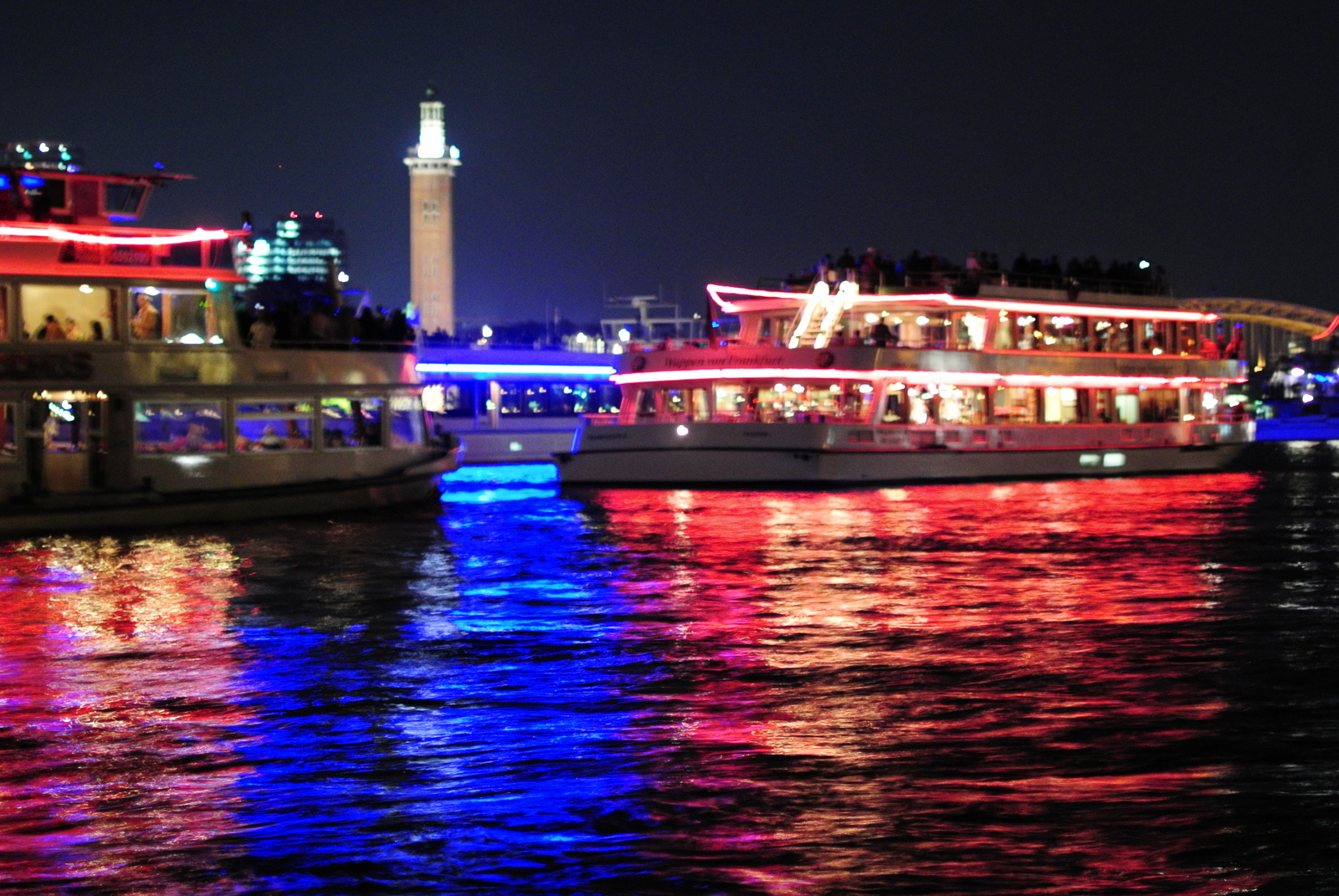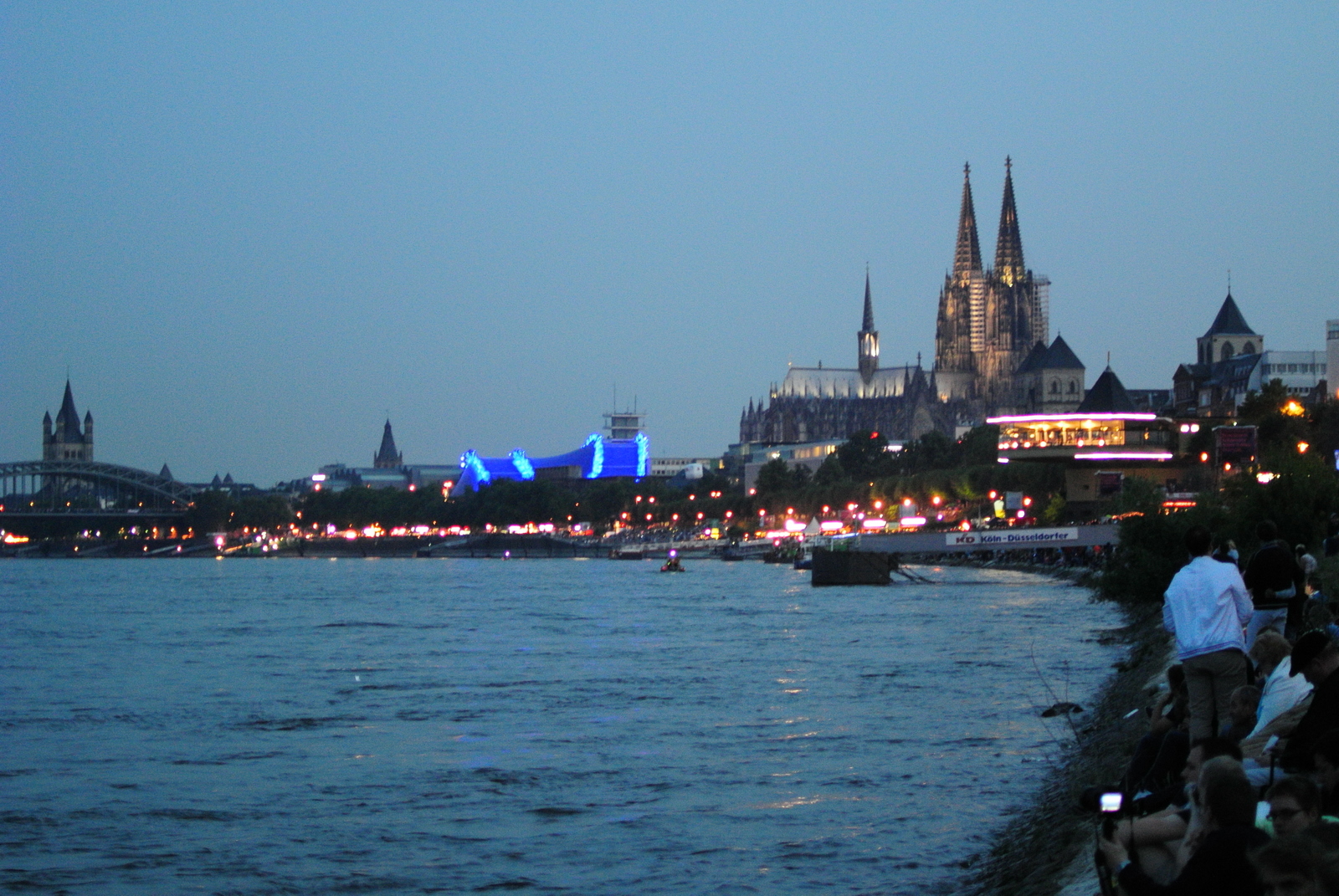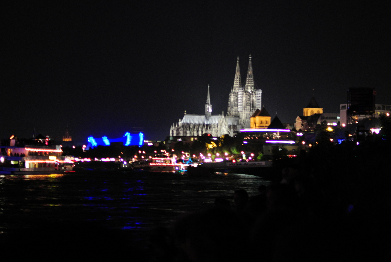 Ora albastră a venit, dar fără trepied sau alte puncte de sprijin n-am reușit aproape nici o poză clară. Păcat, se vedea frumos Domul. Când s-a mai întunecat, pe la 10:30, au venit vapoarele în defilare, 50 la număr, întâmpinate cu artificii atât pe apă, cât și pe mal. Noroc că-mi dăduse cu clătitele și două pachete de artificii, am dat și la vecinii care n-aveau și am făcut un spectacol frumos.