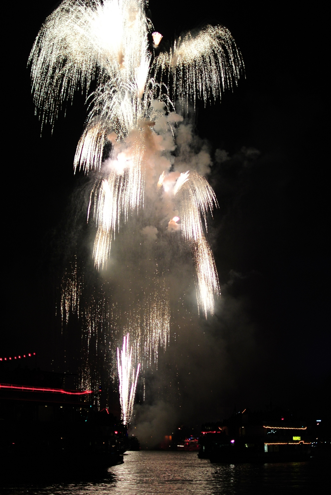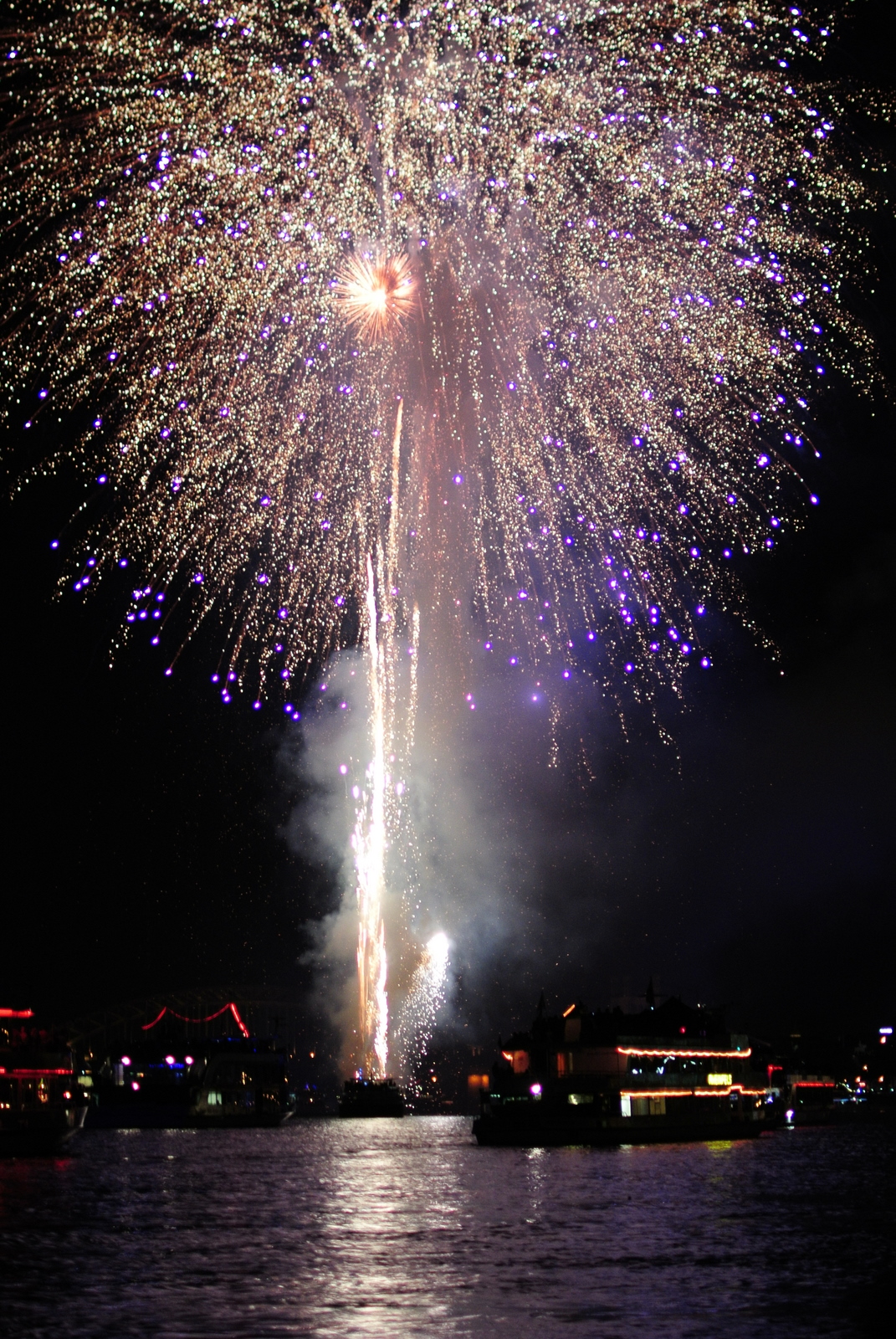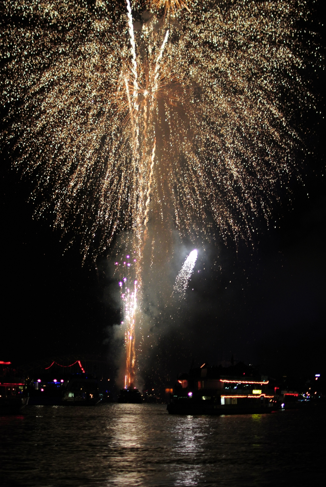 Festivalul ”Kölner Lichter” prilejuiește o zi întreagă de spectacole și voie-bună, dar atracția principală, care-i dă și numele, sunt artificiile. Au început la 23:30, imediat după ce s-a întunecat (se vede că suntem mai în Nord, se întunecă târziu, ce frumos). Involuntar se face comparația cu spectacolul de la Zürifäscht. Aș zice că au fost asemănătoare din punct de vedere al calității; n-au avut elicopter la Köln, dar au avut altceva – o poveste. La Zürich a fost „doar” un spectacol senzațional pe muzică; la Köln seara s-a intitulat ”Traumfänger”, ”prinzătorul de vise”. A început prin trimiterea la culcare a unui copil (la urma urmei e aproape miezul nopții), care se plânge că visează urât; tatăl îi aranjează un Prinzător de Vise din… artificii.