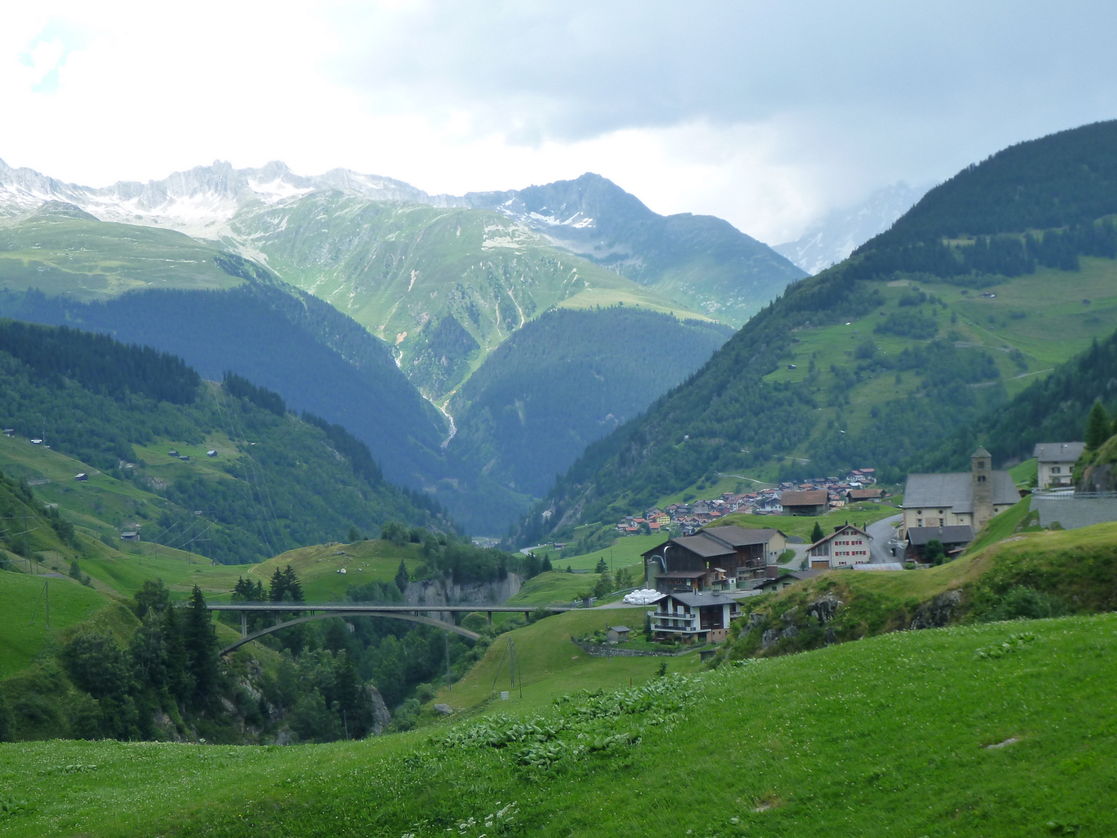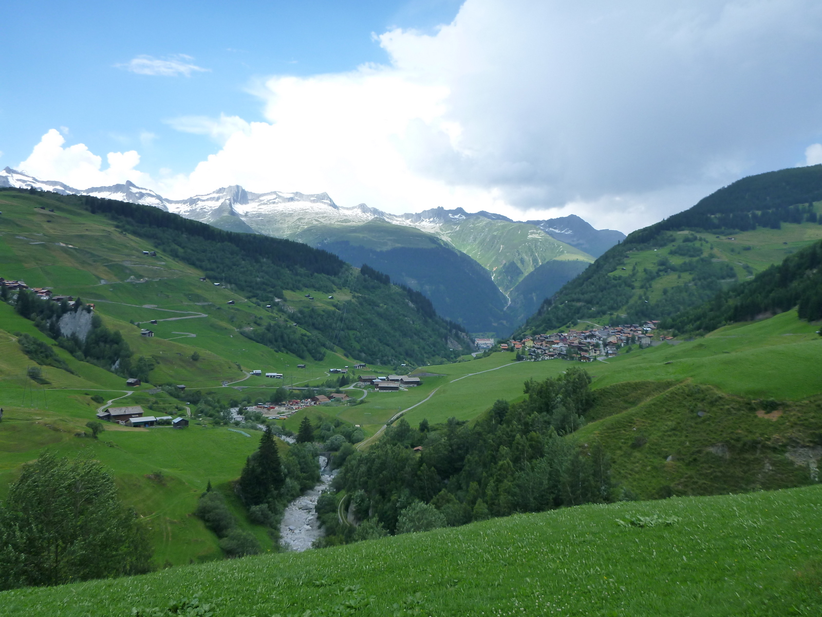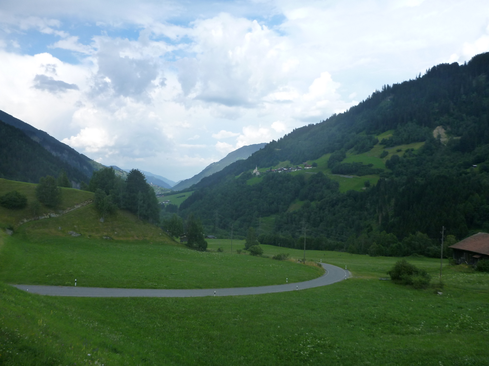 Încerc să găsesc un drum pe lângă cel de mașini – fără succes, trebuie să urc din nou spre asfalt. O dată, de două ori. A treia oară, mă rătăcesc de-a binelea. După ce o iau greșit de două ori trebuie să stau față cu reacțiunea: am luat-o mult prea mult în jos, pentru a ajunge la Disentis trebuie să urc un deal cât Alpe D’Huez. Desigur, nu cât Alpe d’Huez, dar pentru mine e suficient un delușor mai înclinat.