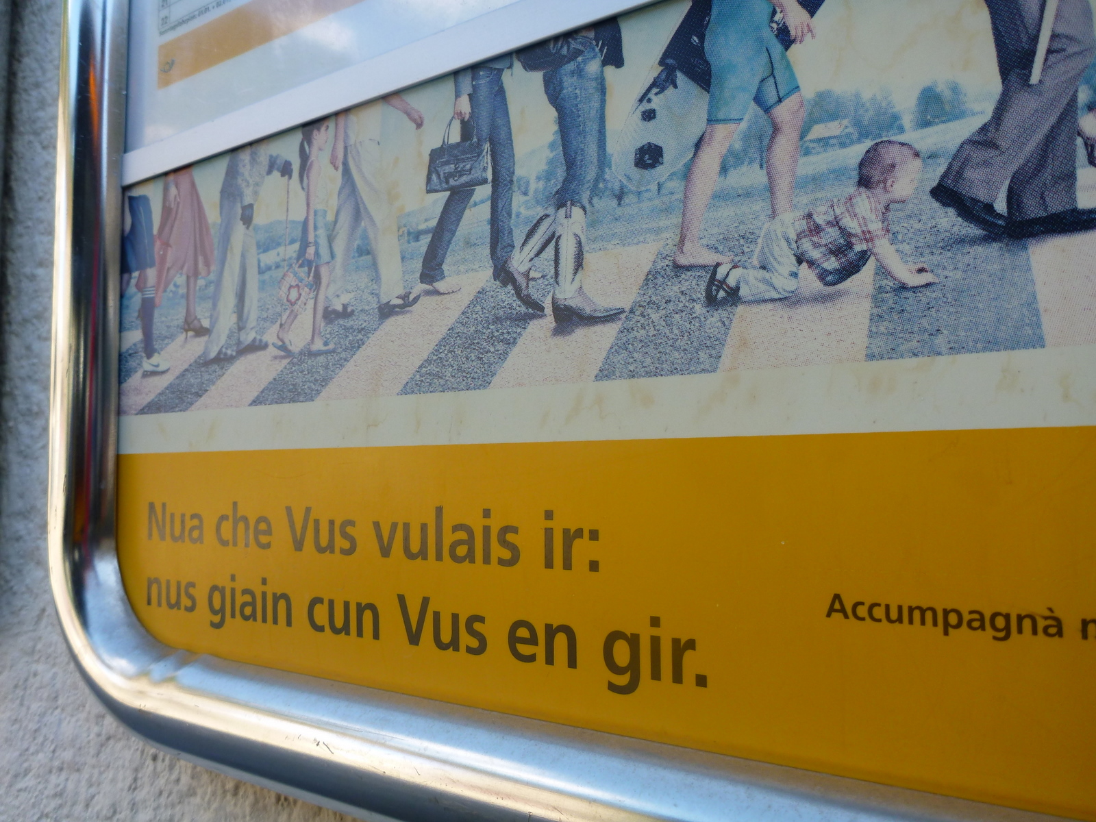 văzut în timp ce urcam de zor spre mânăstire m-a îndemnat să deschid wikipedia pe drumul de întoarcere la capitolul ”limba retoromană”. Și-am aflat lucuri: