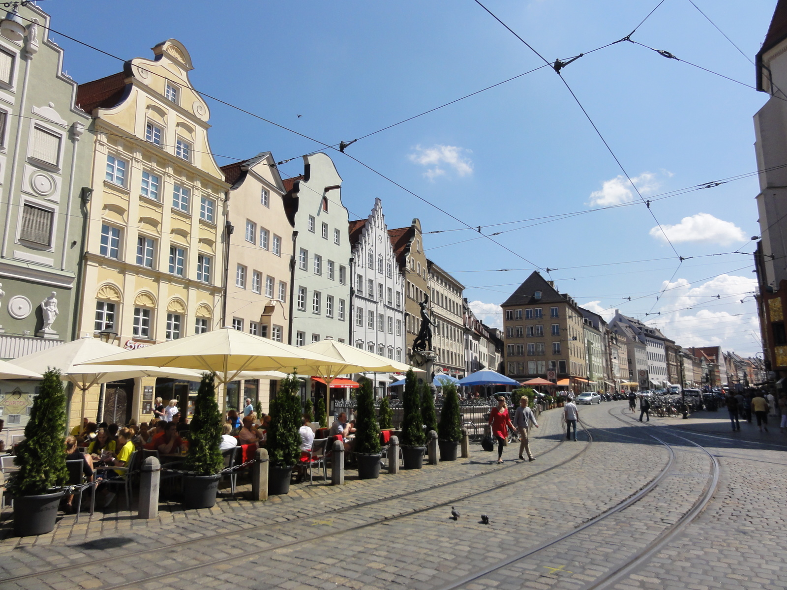 Ajunsesem la prânz în Augsburg, un oraș frumos din Bavaria, nu departe de München – nu știu dacă arhitectura e original medievală sau refăcută după război, dar arată foarte bine.