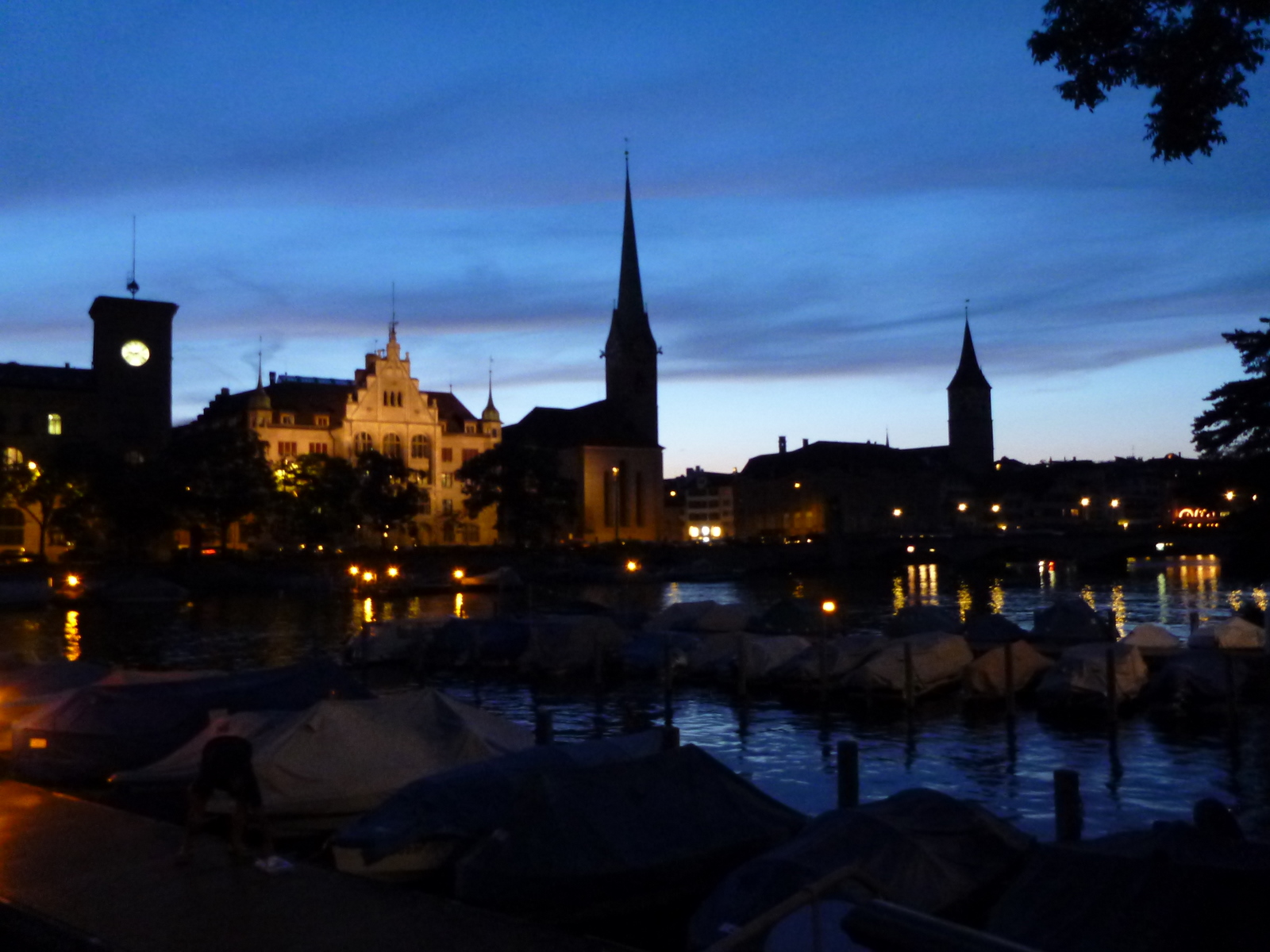 Au sosit M&C! Bucurie. În prima zi, de acomodare, plimbare prin Zürich. După ce a plouat de câteva zile, se pare că vremea ține cu noi. N-am crezut că se încălzește atât de mult într-o singură zi – astfel se face că n-avem costumele de baie la noi, ce-ar mai fi mers o baie în lac, chiar fără săritură de la platformă, ca cei copii.
