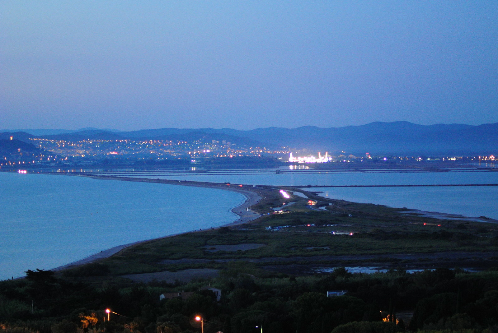 „Întoarceț la prima ocazie”, Jane într-una, eu nimic. Tocmai când încep să pierd speranța că merg bine, văd indicatorul spre Giens, pe un drum care la Jane apare marcat ca necirculat. Ha! Văd un indicator care zice că e închis între nu știu ce ore, probabil de-aia nu se simțea Jane încrezătoare. Mda, altă dată m-ar fi dus pe un bac noaptea, care nu mai mergea de mult, da’ mă rog. Faza e – am găsit drumul, mergem înainte, și nici nu e așa aglomerat – e târziu, o fi plecat lumea de la plajă.