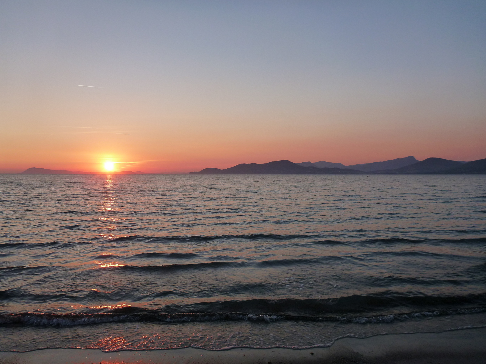 După o rătăcire scurtă la capăt și întrebatul unui localnic (am ieșit prea departe), ajung la parcarea Mandrague, fug plin de anticipație la plajă… nici un kitesurfer. Nna. Asta este, or fi plecat. În schimb, avem parte de un apus pe cinste.