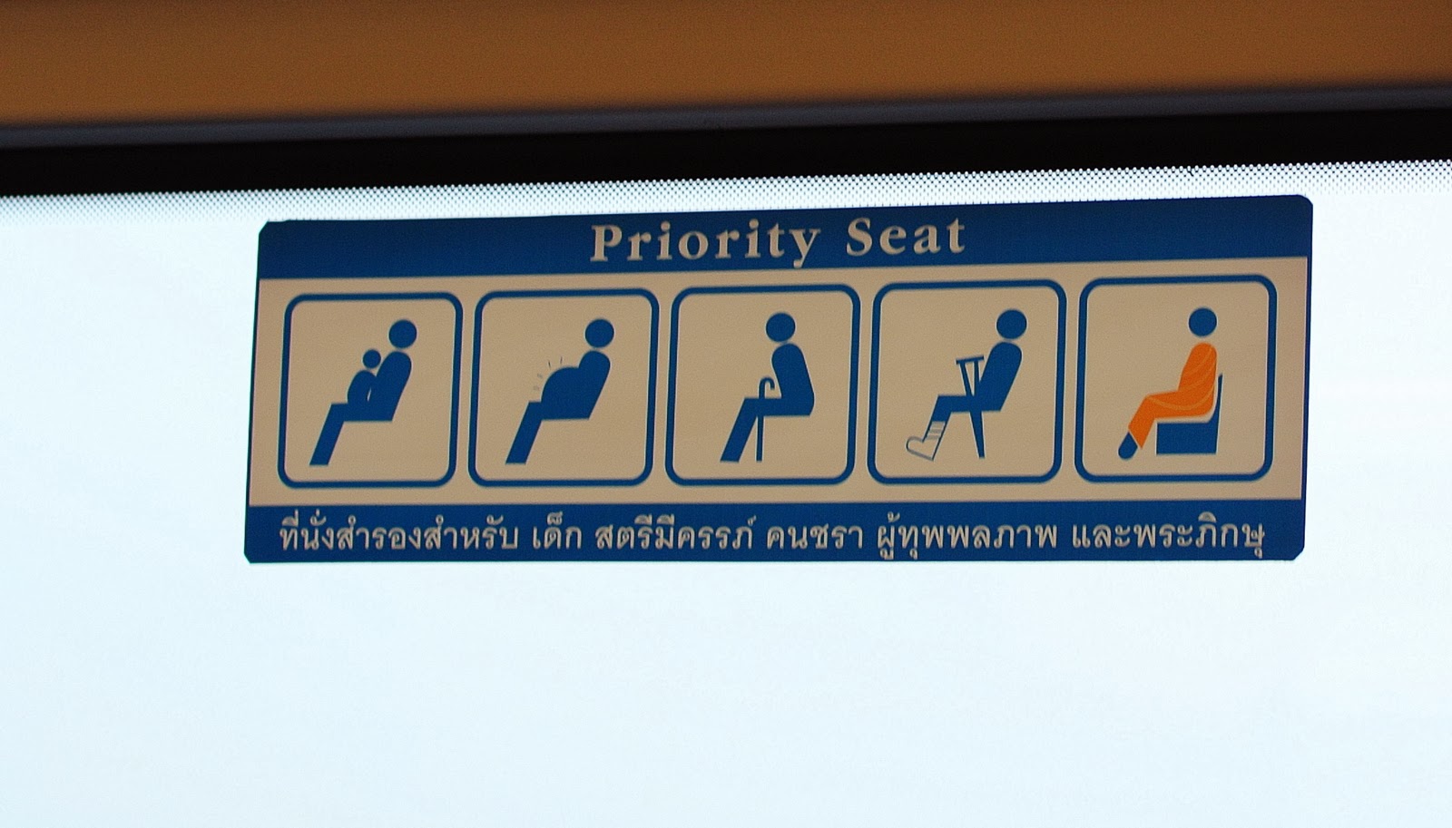 Luaserăm un taxi până la gara Phaya Thai, de unde urcarăm în salutarul tren expres ce ne duce la aeroport cu 160km/h (nu-mi revin… la București pe când?) și care are locuri special amenajate pentru copii, bătrâni și… călugări.