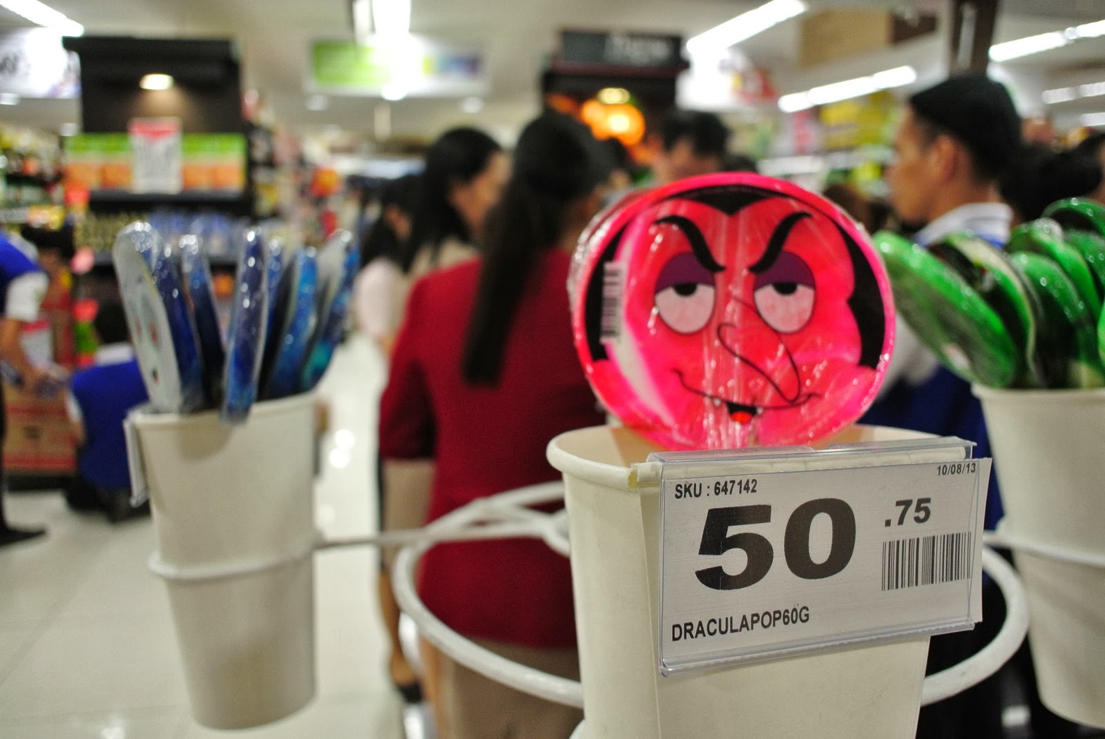 În timp ce A. e la frământat, merg cu M. la cumpărături de fructe în supermarket, unde găsim pregătiri intense de Halloween, cu o față cunoscută:
