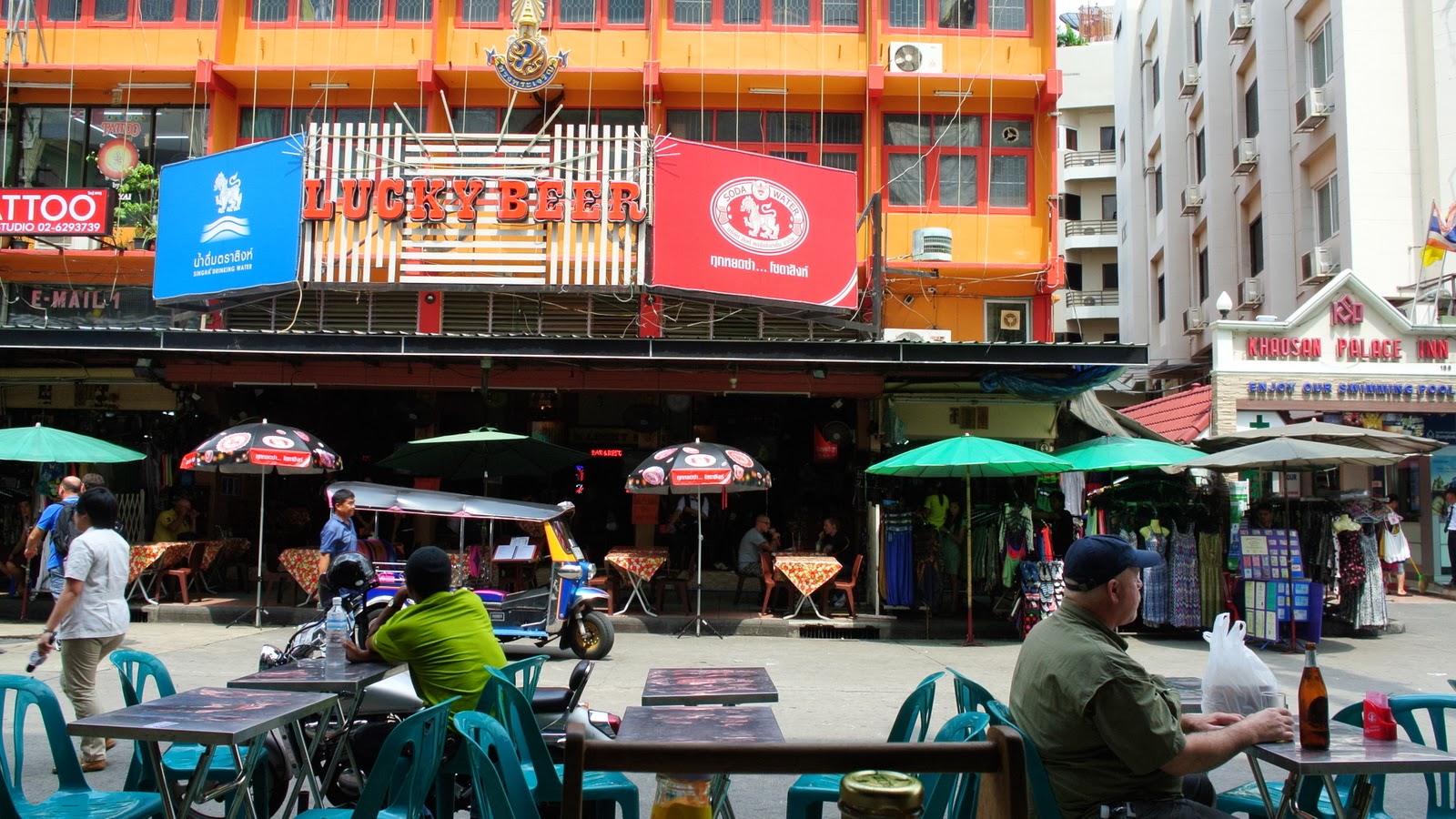 Toate ghidurile zic „nu merge pe strada Khao San, a devenit hiperturistică” – dar parcă exact asta mă atrage, parcă vizita la Bangkok fără Khao San nu e completă, așa că mă urc într-un taxiu roz agățat pe stradă dincolo de gară, ajung destul de repede (până acum traficul din Bangkok mi s-a părut intens, dar nu dărâmâtor).
