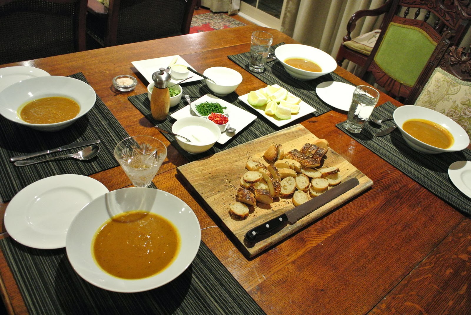 A. a avut serioase dificultăți în a alege meniul pentru cină – am pornit de la o supă de dovleac, trecut prin diverse mâncăruri mexicane, chinezești, thailandeze, până am ajuns din nou la supa de dovleac. ”Simplă, foarte simplă”. Mhm. Așa arată la A. o masă ”simplă”: