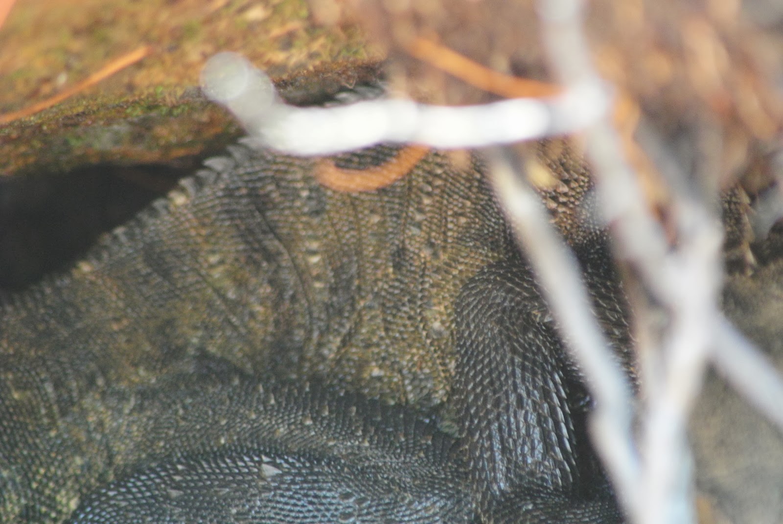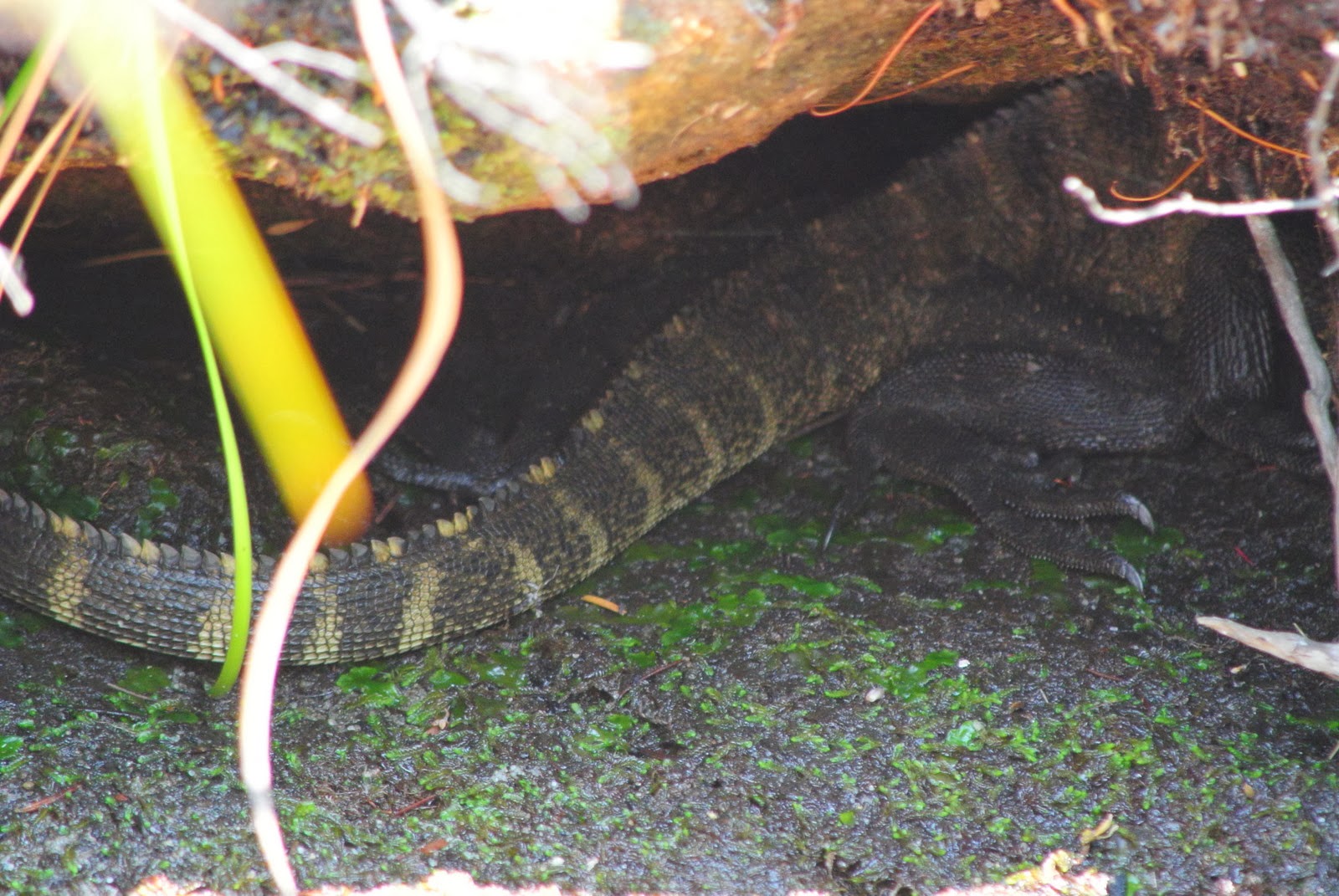 Mă apropii cu respect (șarpele-tigru e, evident, veninos) și fac o poză cu zoom-ul cozii cu dungi ”tigrate”.