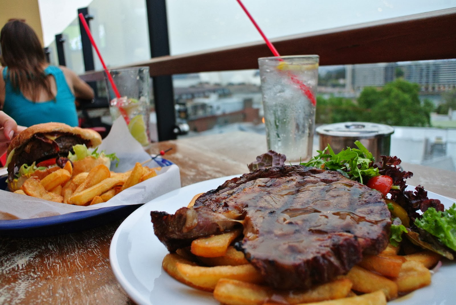 Coborâm și căutăm un loc pentru cină – C. are ideea excelentă de a urca la unul din barurile din The Rocks, al cărui acoperiș îl văzusem de sus cu terasă. E o decizie bună au steak day pentru 8 dolari – tot voiam eu să încerc o friptură australiană.