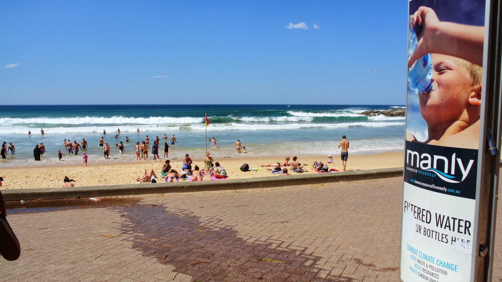 Parcă era ceva punct de observație nu departe de Shelly Beach – îl ochisem acum 2 zile, dar fiind în picioarele goale și având alte priorități nu-l căutasem cu atenție. Dar acum – îmi umplu frumușel butelca de aluminiu (în sfârșit o folosesc la adevărata valoare!) la unul din punctele de adăpare de pe plaja Manly