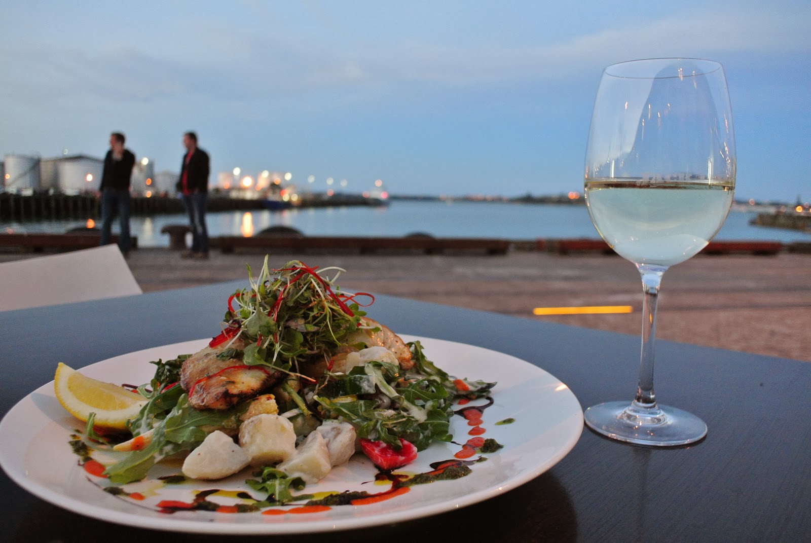 Timp pentru a pune burta la cale. Aleg un restaurant de pe faleză, cu priveliște la apă, chit că e cam frig stau afară – nu vreau să ratez Ora Albastră. Care vine fix în timp ce mănânc,