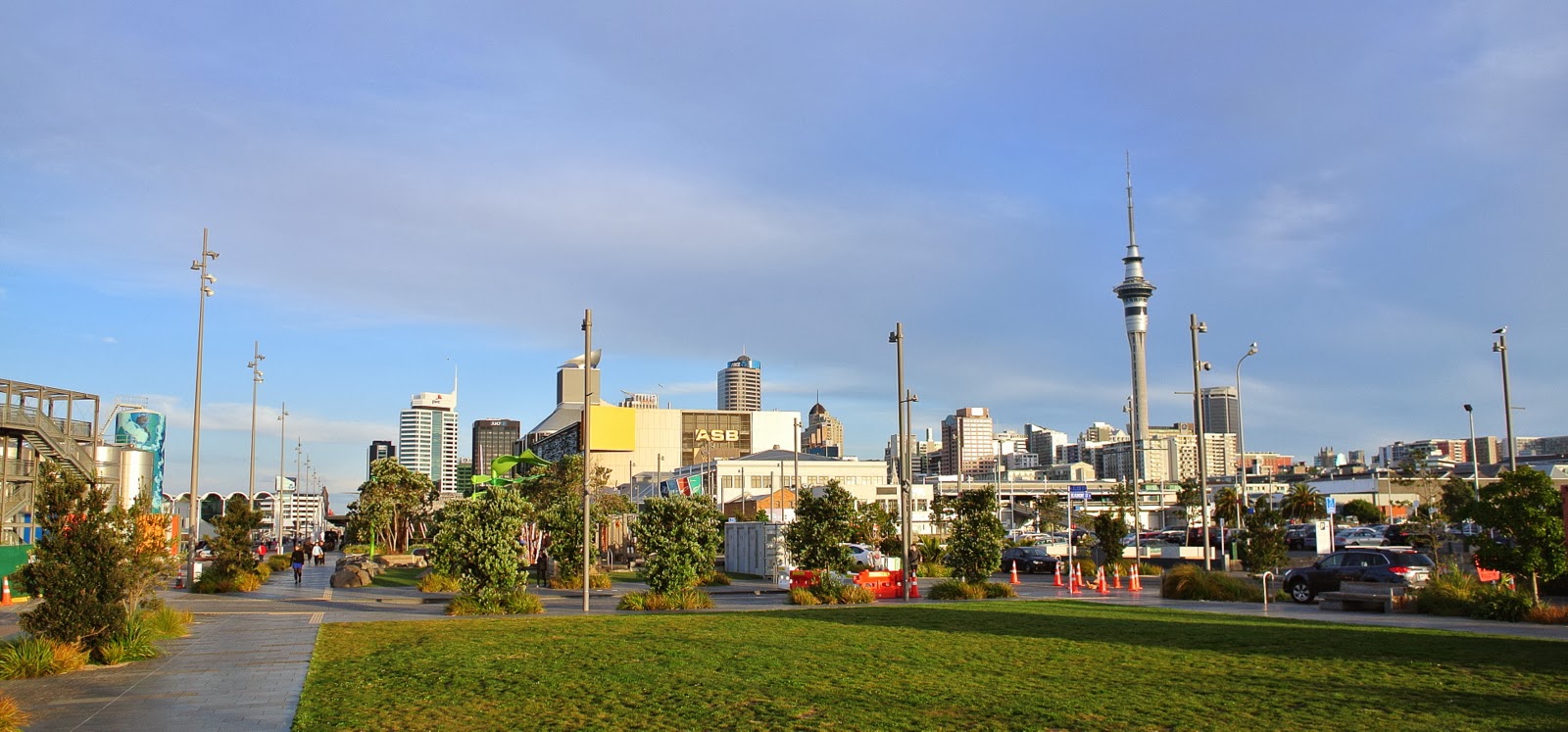 Soarele se uită înapoi de după nori, lumina serii scaldă orașul.