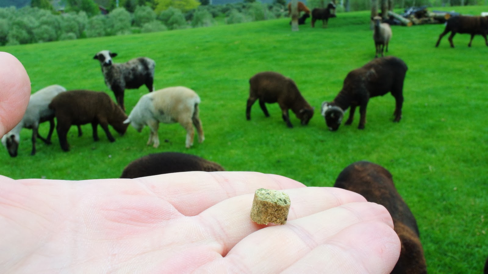 Ne lasă să le dăm de mâncare, un fel de furaje concentrate, se pare foarte gustoase.