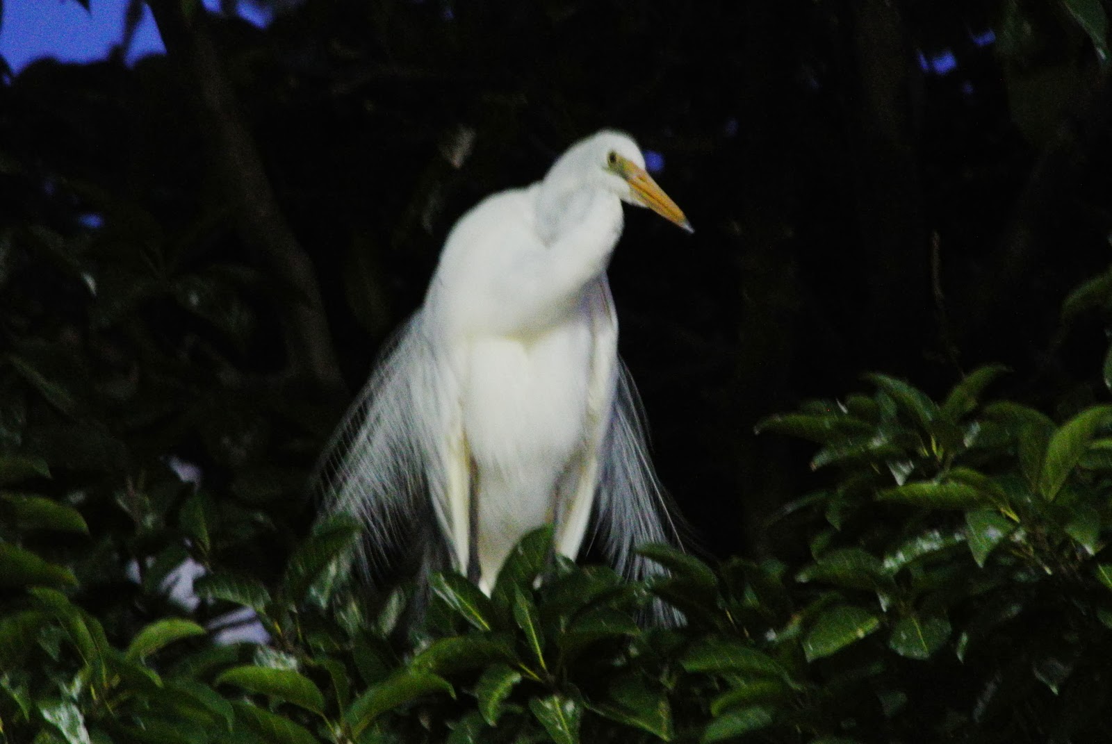 Stau să-i pozez până se întunecă de-a binelea, iar când se întunecă… parcă pasărea asta altfel zboară. Hmm. Mă uit mai atent, dar nu prea-mi vine să cred. Mă uit și mai atent – într-adevăr, se oprește într-un copac și se așează promot cu capul în jos… e un DITAI LILIACUL, mare cât un șoim de pe la noi. Îl recunosc că are un zbor un pic mai neregulat decât înaripatele. Uaaa. De-ți intră vreunul din ăsta-n păr… Din păcate e deja atât de întuneric încât n-am nici o șansă să-l pozez.