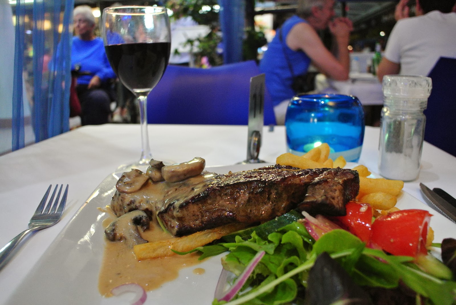 și adăstez la un restaurant de pe strada paralelă, pentru o friptură australiană zdravănă.