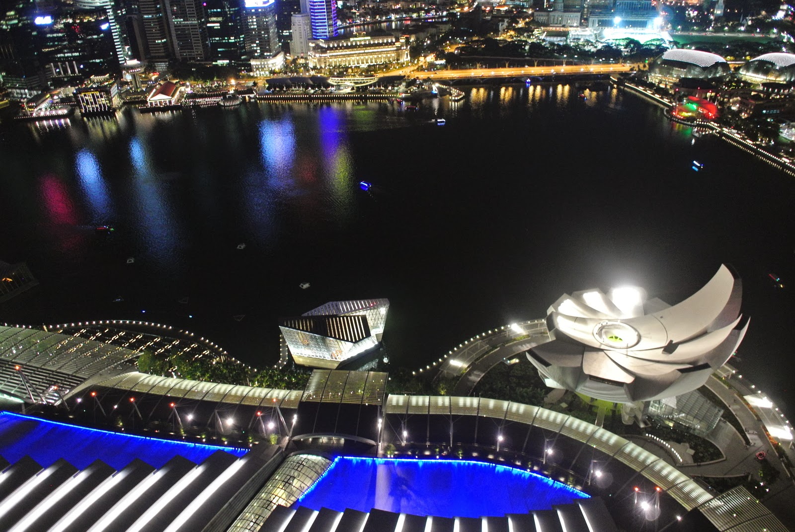 Data trecută am „lăsat pe data viitoare” urcarea în cazinoul în formă de barcă pe 3 stâlpi – hai sus. S-a dovedit un loc excelent pentru savurarea Orei Albastre – cu bonus artificii jos în iaz.