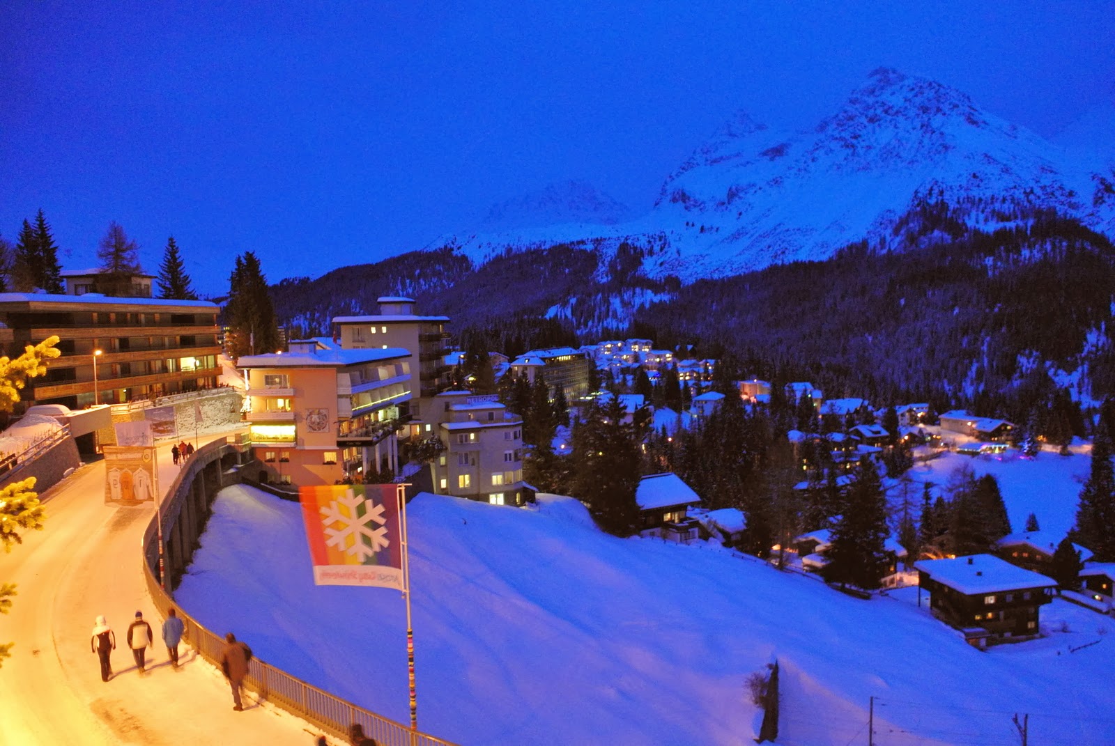 Este, într-adevăr… doar că nu ne duce la Arosa, legătura nu există, mergem la Chur, de unde luăm trenul înapoi spre Arosa – o oră jum’ate cu totul. Toată ideea cu rămânerea peste noapte în Arosa pentru a câștiga timp… mda. Măcar bine că ajung înapoi pe ziuă. Iau rucsacul de la închirieri, să las oare schiurile aici? Hai să nu întind coarda, pe telefon Google Maps arată hotelul a fi aproape. Urc pe ce pare a fi o scurtătură… și urc… și urc… și-mi scuip plămânii – suntem la înălțime, car și schiurile… de ce n-am întrebat dacă pot să le las la magazin? Grrr. Ajung în sfârșit în vârful dealului, unde arată Google Maps foarte clar că ar fi hotelul, este într-adevăr un hotel, dar – nu al meu! Nu-mi vine să cred, hotelul meu e tocmai la capătul de jos al străzii – cică în Arosa nu sunt numere la casă, zice recepționista, așa că Google Maps se mai încurcă… Și uite așa ajung scrâșnind din dinți la hotelul Alpina abia la lăsarea întunericului – măcar prind Ora Albastră deasupra stațiunii,