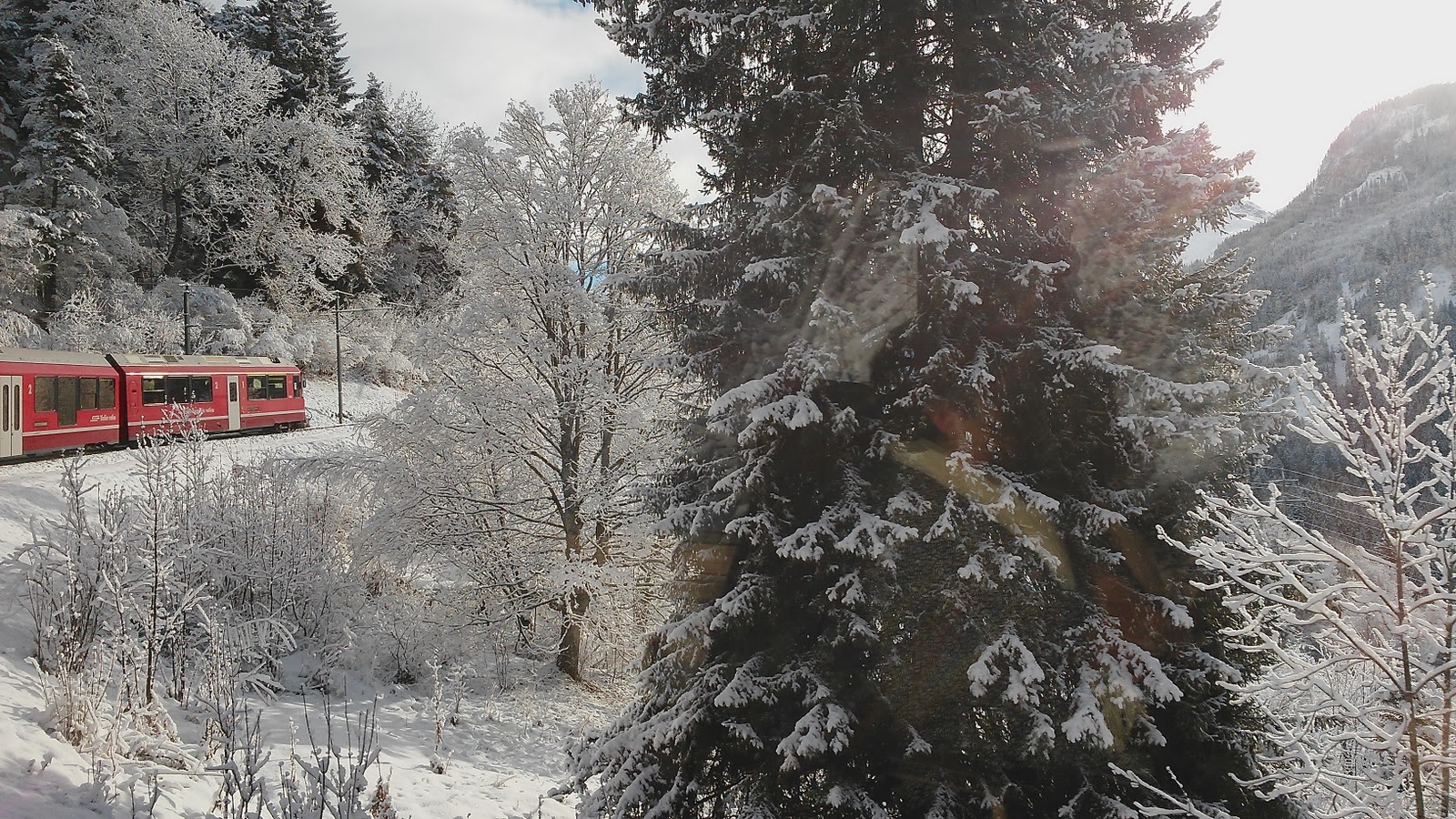 Inevitabil adorm în tren – legănatul și căldura, plus ora matinală, nu-mi dau nici o șansă. Mă trezesc doar să schimb de două ori, buf la loc. La un moment dat însă, când mijesc ochii, îi casc apoi automat brusc și larg – afară, winter wonderland.