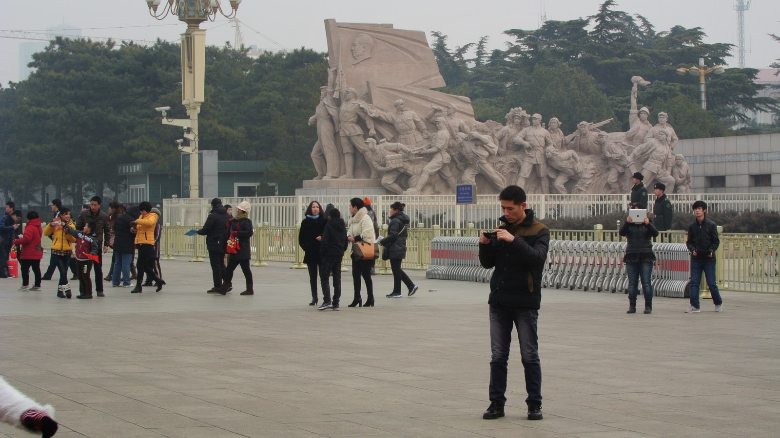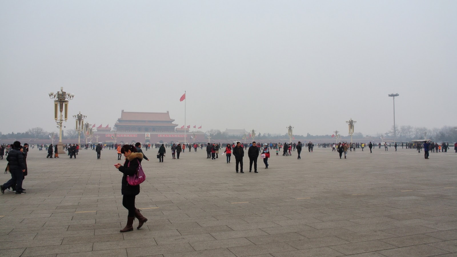 și-mi îndrept atenția către imensa piață care se deschide la stânga. Eu o știam Tien-an-Men, dar o văd scrisă peste tot „Tian’anmen” – asta se pare că e traducerea „oficială” în grafie latină.