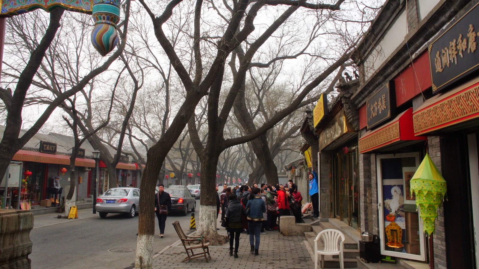 De la templul Lama se face o stradă de hutong turistic, pe care o apuc. La un moment dat văd un grup de chinezi în stradă ascultând cuminți indicațiile unui ghid – taci că aici e ceva „local” de văzut. Mă strecor pe lângă ei și intru într-un minitemplu (cred). Dacă e ceva important aici, atunci mi-a scăpat. Fac 2-3 poze la alibi și merg mai departe.
