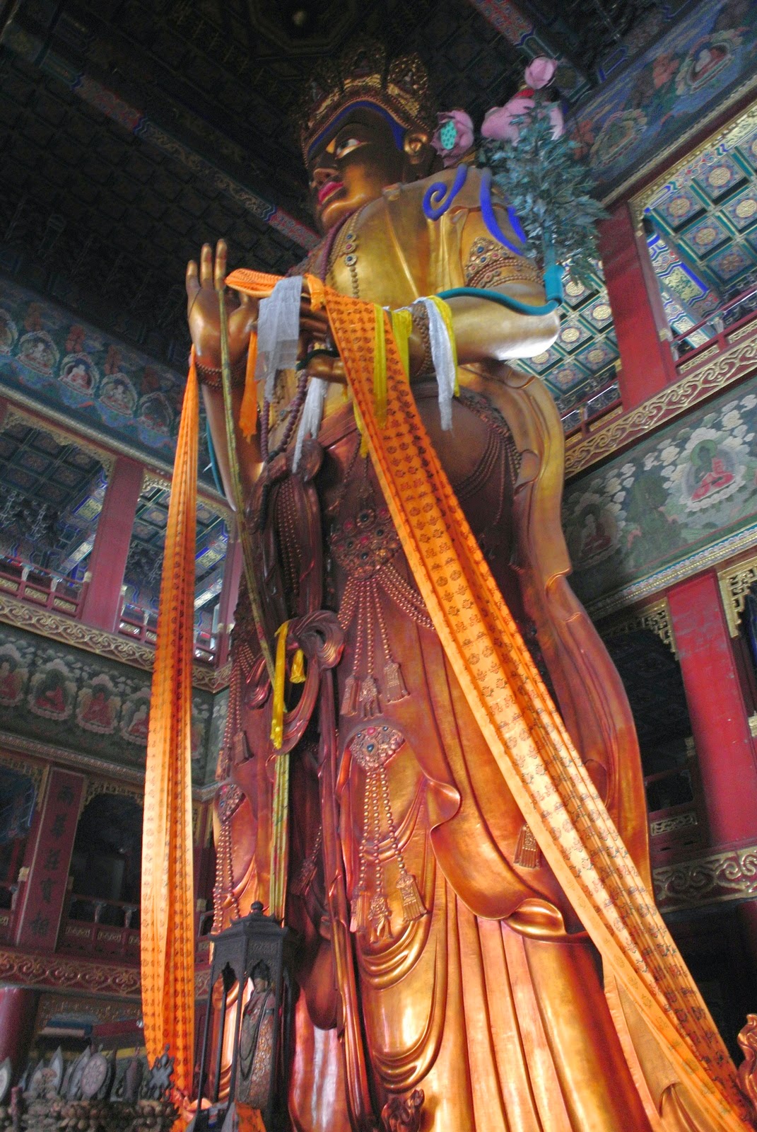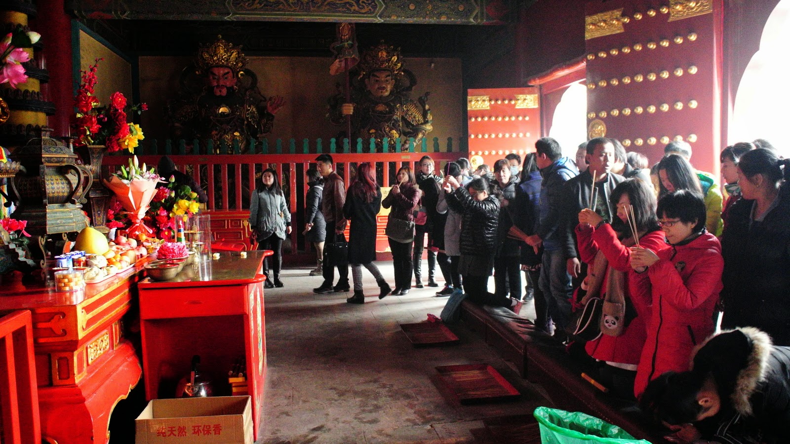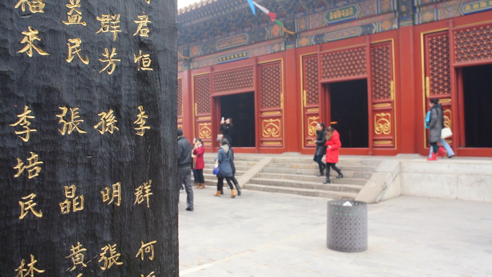 Cumva nu-mi închipuiam Beijingul ca un loc plin de temple, auzisem că Mao a ras tot ce amintea de cultura imperială. Nu e chiar așa. Sunt o sumedenie de temple păstrate „prin grija statului”, cum amintesc inscripții mai peste tot. Templul Lama se pare că e la căutare turistică, și într-adevăr – văd aici mai mulți străini decât în zilele precedente la un loc. Dar și mulți chinezi care vin, aprind bețe și se roagă – clar o imagine la care nu mă așteptam într-un stat antireligios – se pare că s-au făcut „reforme”, sau s-au relaxat strictețurile și în acest sens.