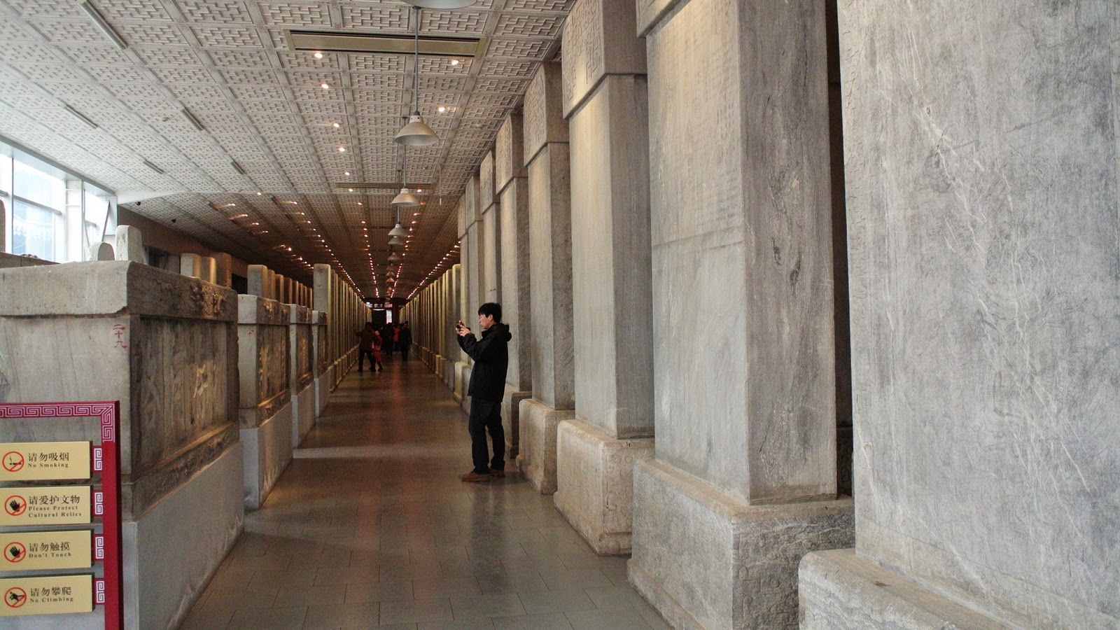 Unul din locurile preferate e aleea caligrafică – plăci mari de marmură cu scrieri chinezești vechi, ce au stat la baza alfabetului. Caligrafia, ce sport frumos.
