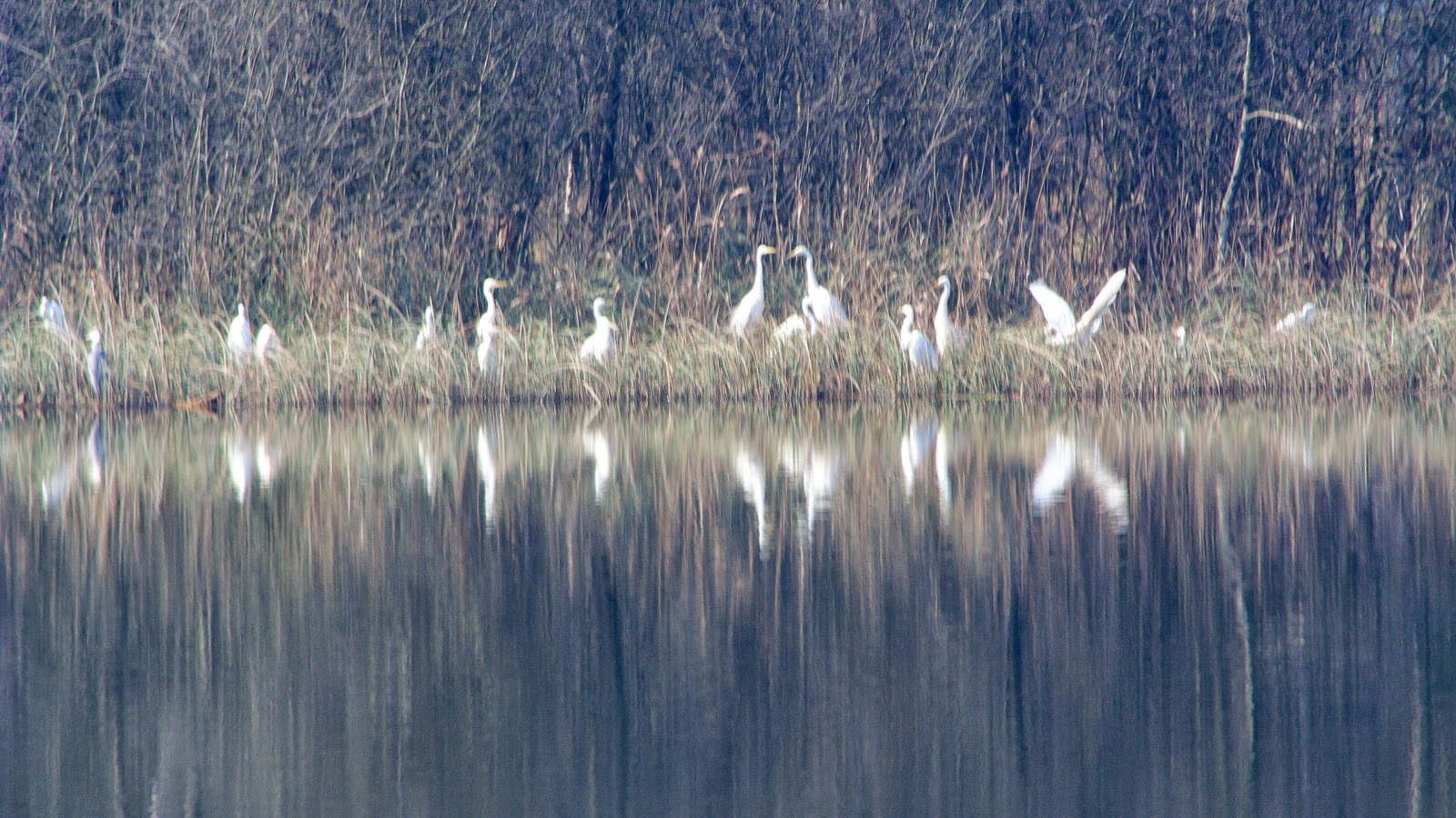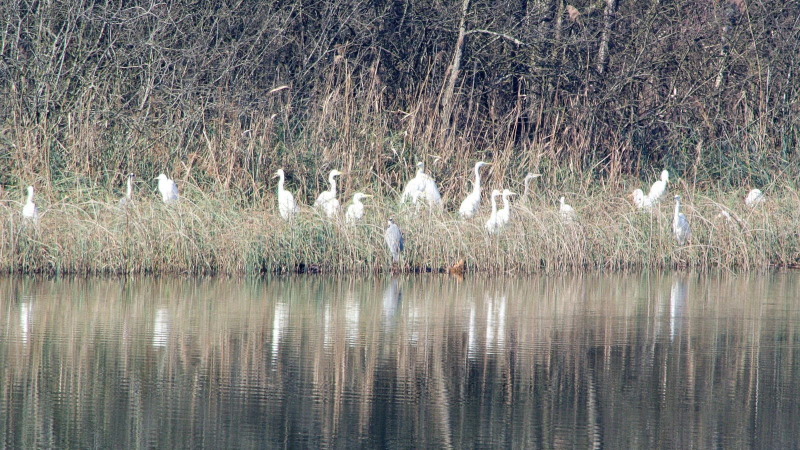 ”Nu știu, cred că egrete”. Le arăt o poză – ”da, zice un știutor, egrete argintii. Sunt albe la culoare”, adaugă zâmbind la ochii mari pe care probabil i-am făcut. ”Și un mare stârc albastru ai acolo. Cel gri la culoare :)”.