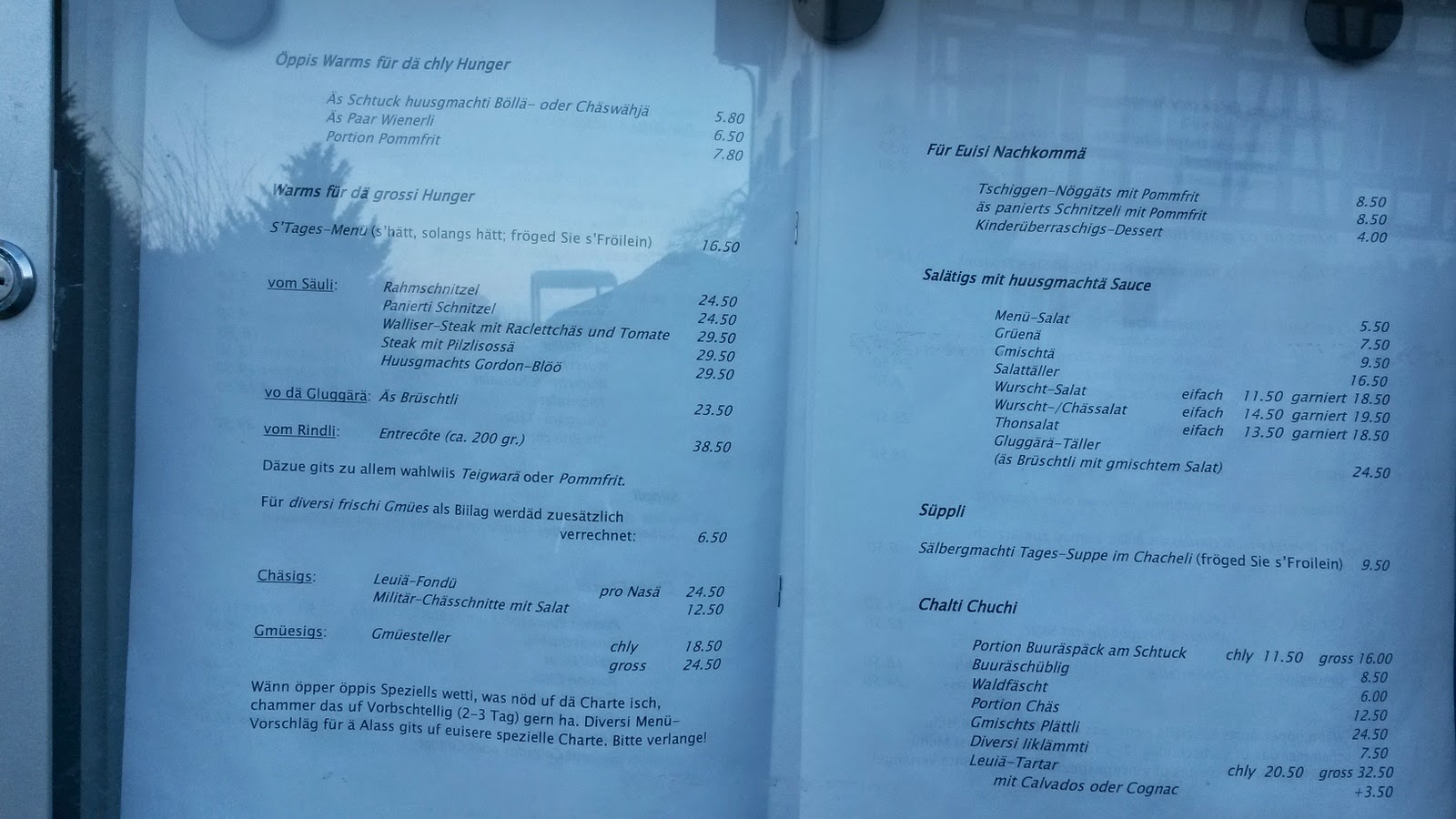 așa că purced spre altă destinație – Regensberg, un sat cocoțat pe-un vârf de deal. Data trecută când am fost aici se învârteau găi în jurul turnului, de le-am tras de aproape, de data asta doar peisaje, și-un meniu în dialect local, în lumina caldă a după-amiezii de martie.