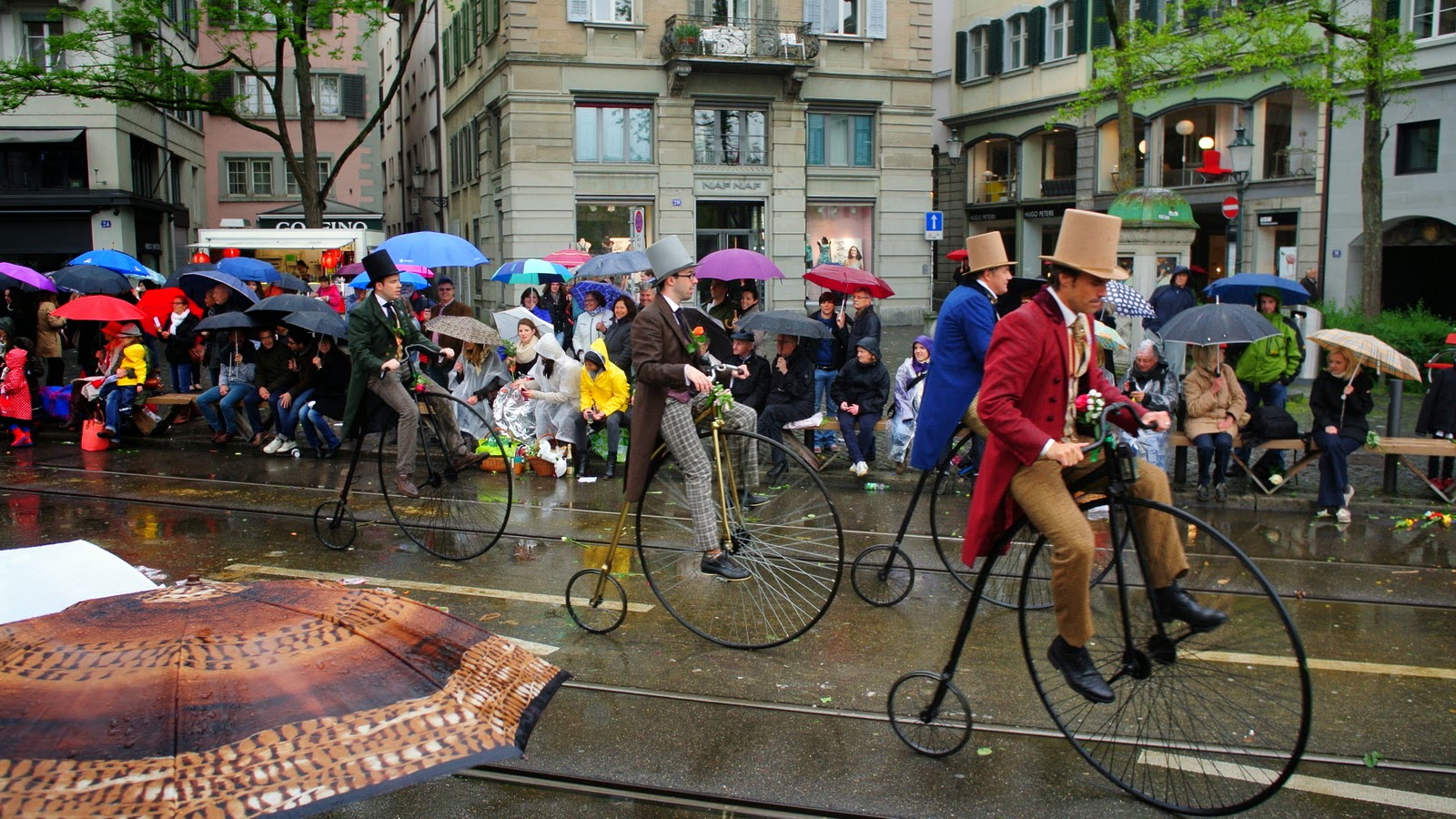Luna se încheie cu tradiționala defilare de primăvară a breslelor din oraș culminând cu arderea omului de zăpadă pe rug – de data asta totul s-a desfășurat prin ploaie. Cred însă că au pus mult explozibil în bietul Böögg, că a explodat destul de repede. Va urma oare o vară călduroasă?