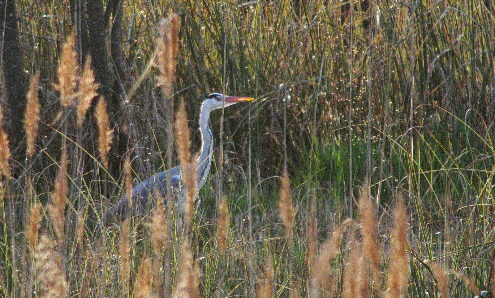 o nouă excursie la lac, pentru floră, faună, oglindiri, verde, galben și-un stârc uriaș albastru.