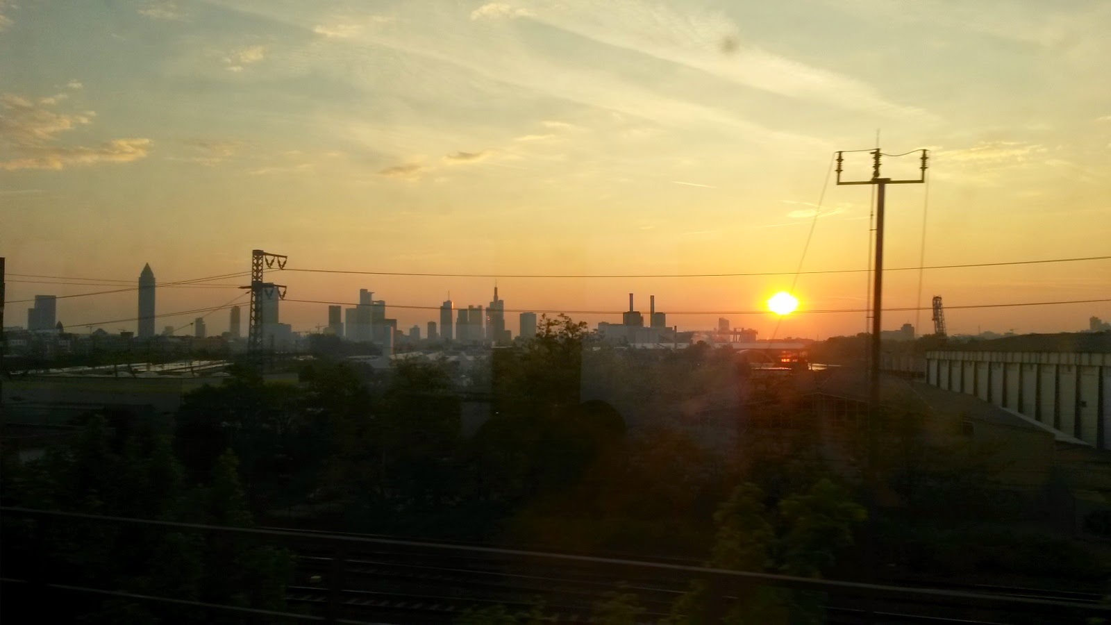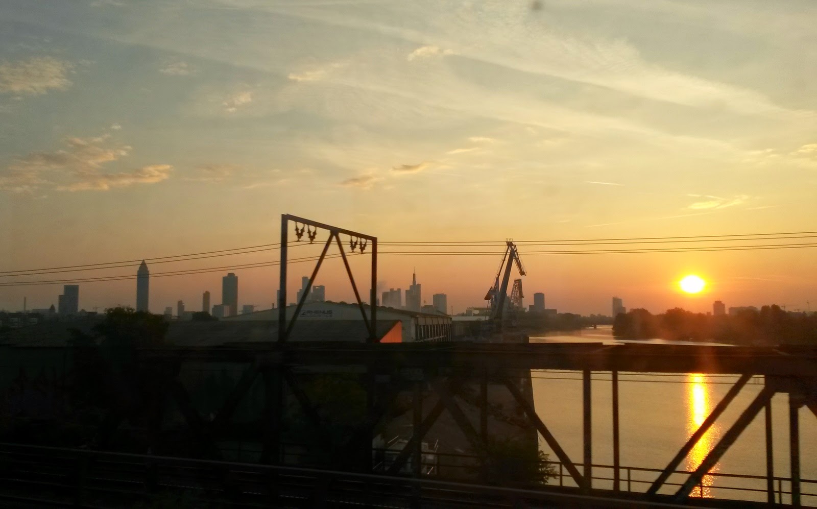 Frankfurtul cu clădiri înalte, vechi și noi,