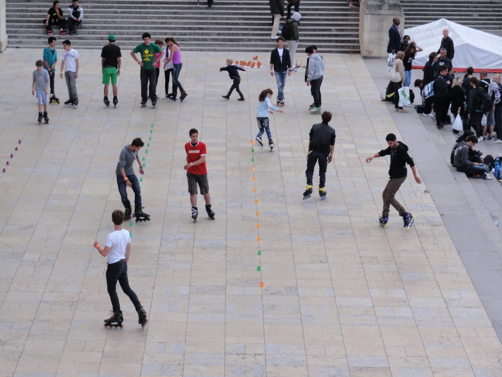 Luăm metroul înapoi de sus de la Trocadero, unde surprindem, cu ultimele rezerve ale bateriei aparatului, un eveniment de skating.