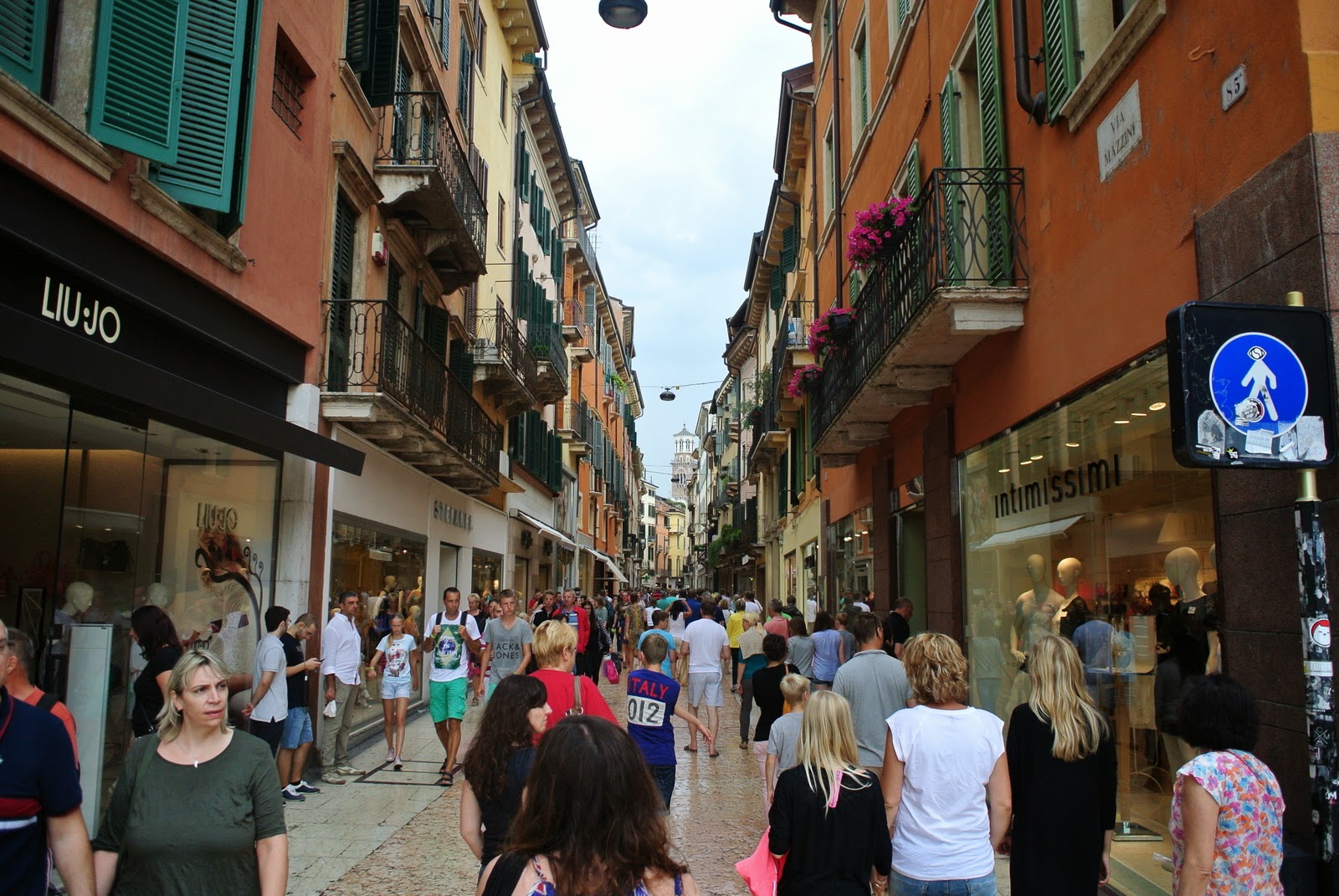 Verona nu mi se pare a fi pe traseul turistic principal în Italia (Veneția-Forența-Roma), dar chiar și așa e plin de lume. Străzile sunt ”clasice” de oraș italian colorat și șarmant, cu picturi pe clădiri, culori, forme estetice peste tot.