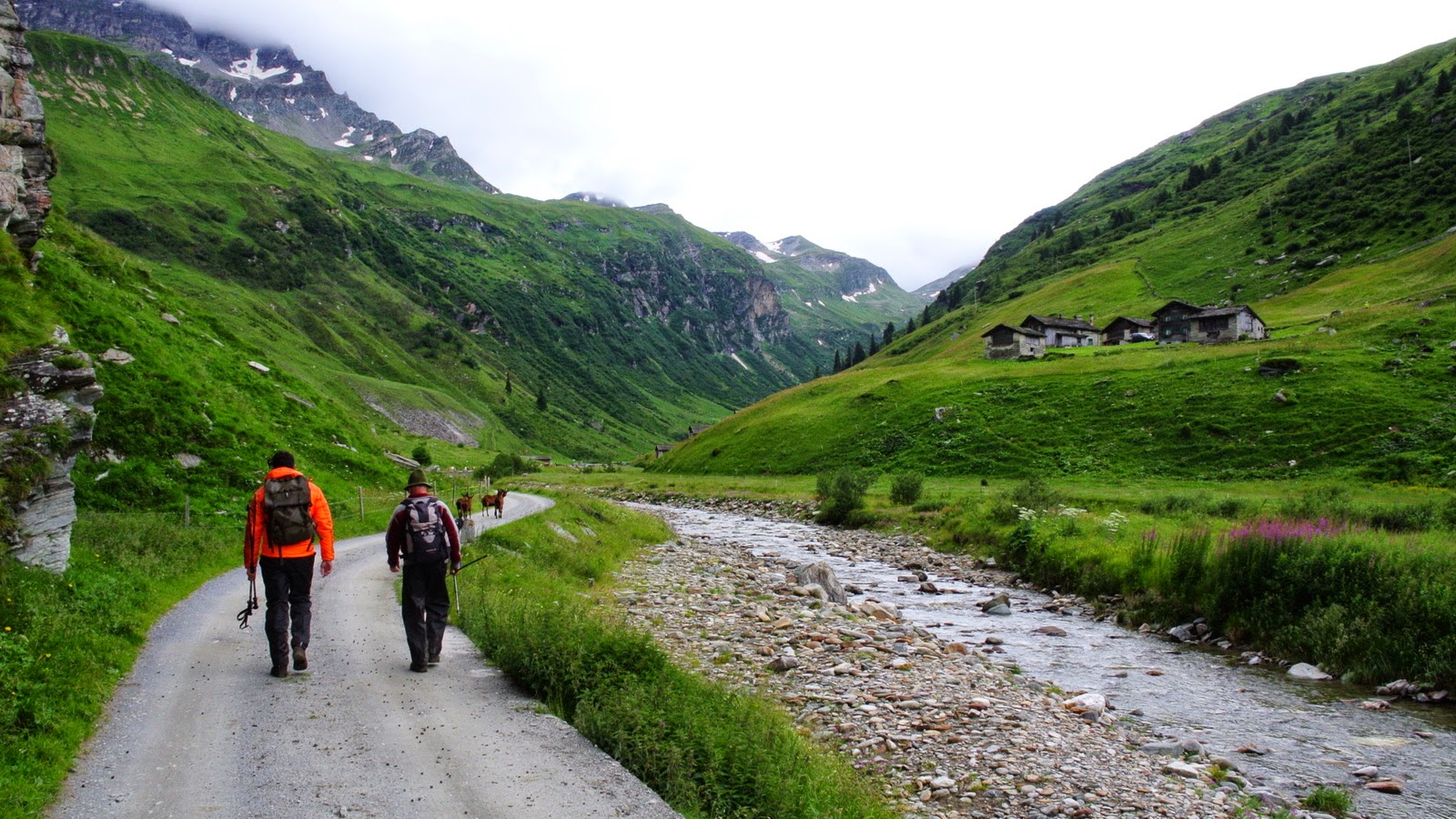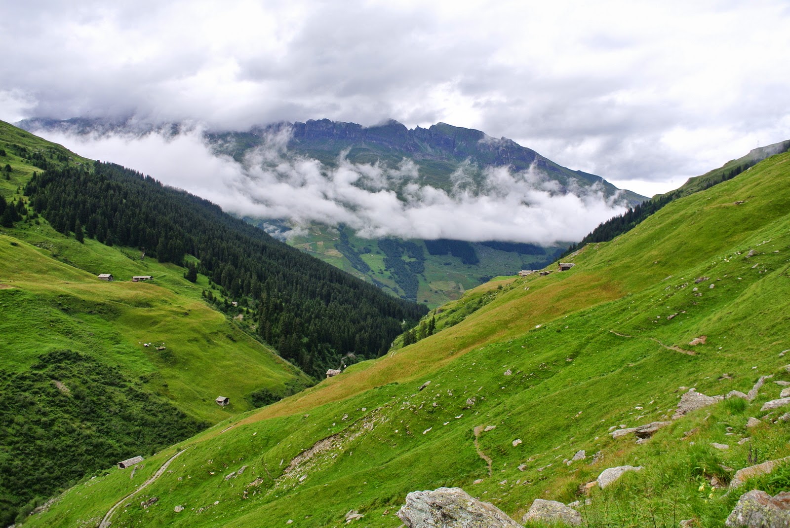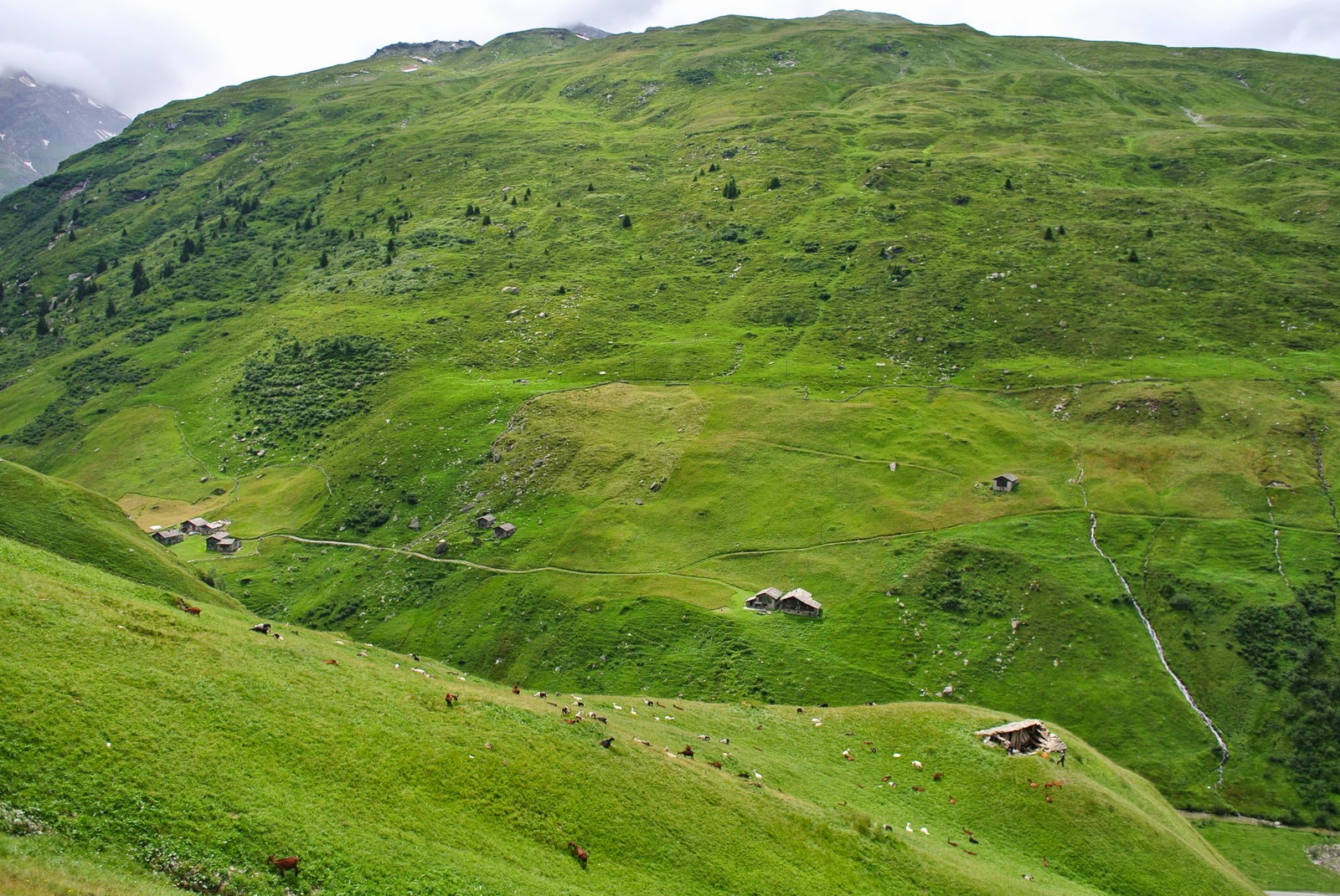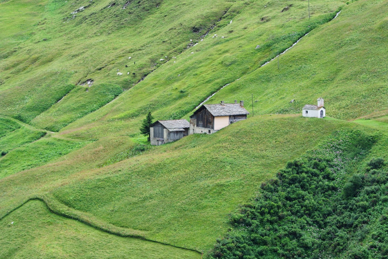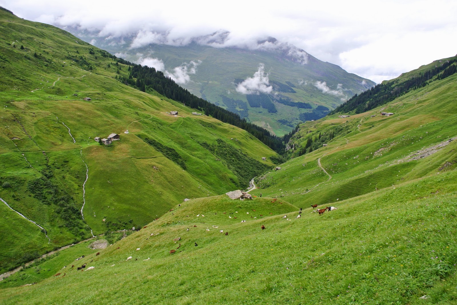 O iau până la buza malului, e abrupt în jos și alunecă. O iau încet paralel cu linia văii, un pic înapoi spre capre. Văd ce pare a fi un pârău care coboară… poate nu e drumul ideal, dacă vine o viitură? Până pornește ploaia țin aproape de firul apei, mai calc în noroi, asta e, dar – hopa, iată niște urme. De capre. Tot mai multe. Hmm. O fi drumul caprelor în jos? Mă țin după el, fără certitudinea că voi putea coborî pe unde coboară caprele.