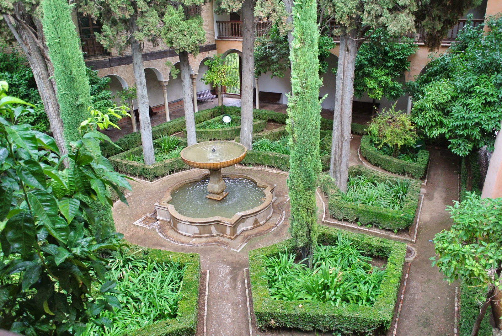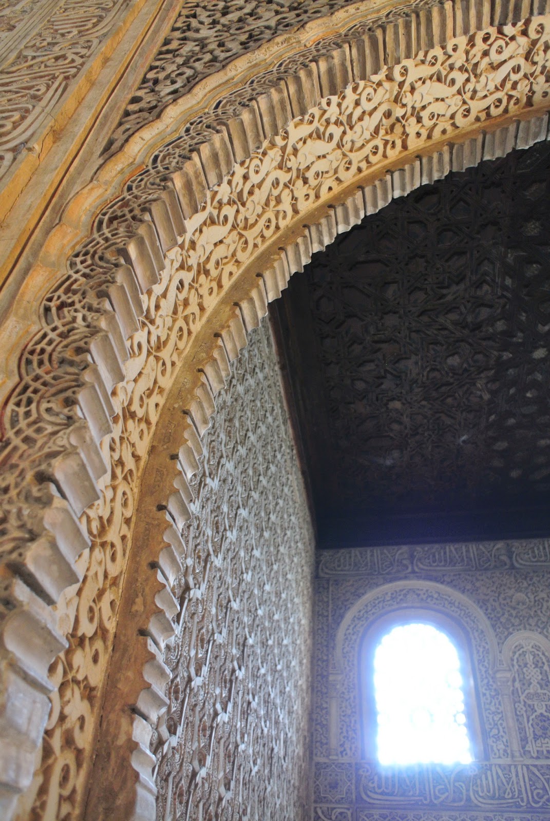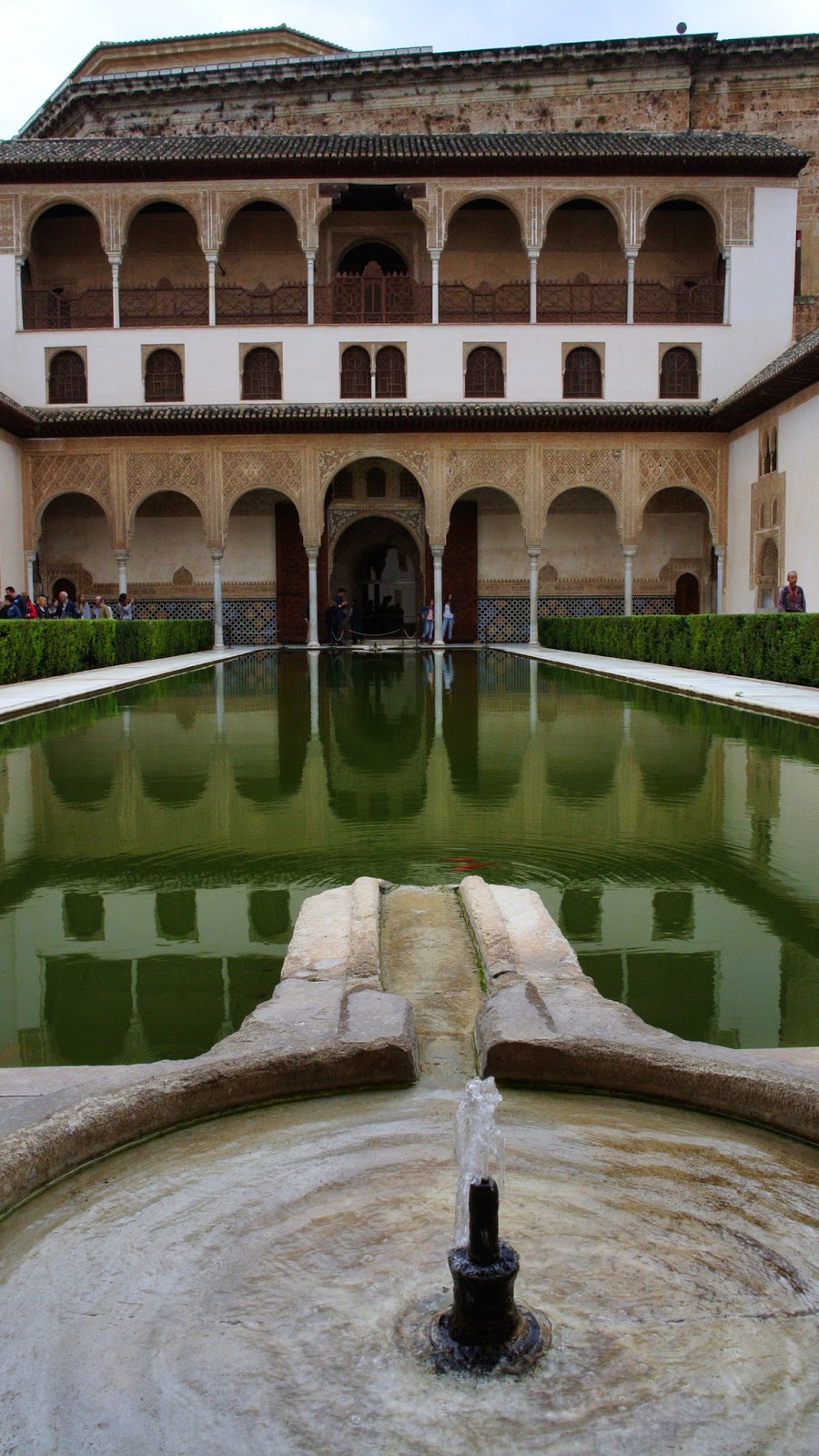 iar palatul Nazarinean mai gol decât mă așteptam (mă așteptam la mobilă gen Peleș), dar impresionant. Arabescurile arăbești sunt la tot pasul, pe ziduri, pe coloane, la ferestre și uși. Pereții cu celebrele mozaicuri. Fructe de Kaki. Bazine. Grădini.