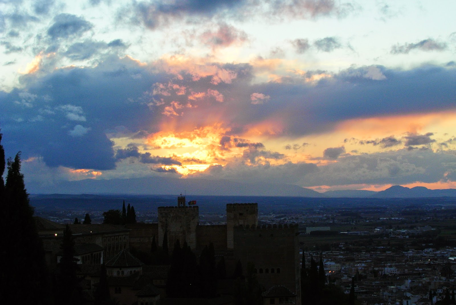 După palat prindem lumina serii pe fortăreața impunătoare Alcazaba. Ce lumină frumoasă.