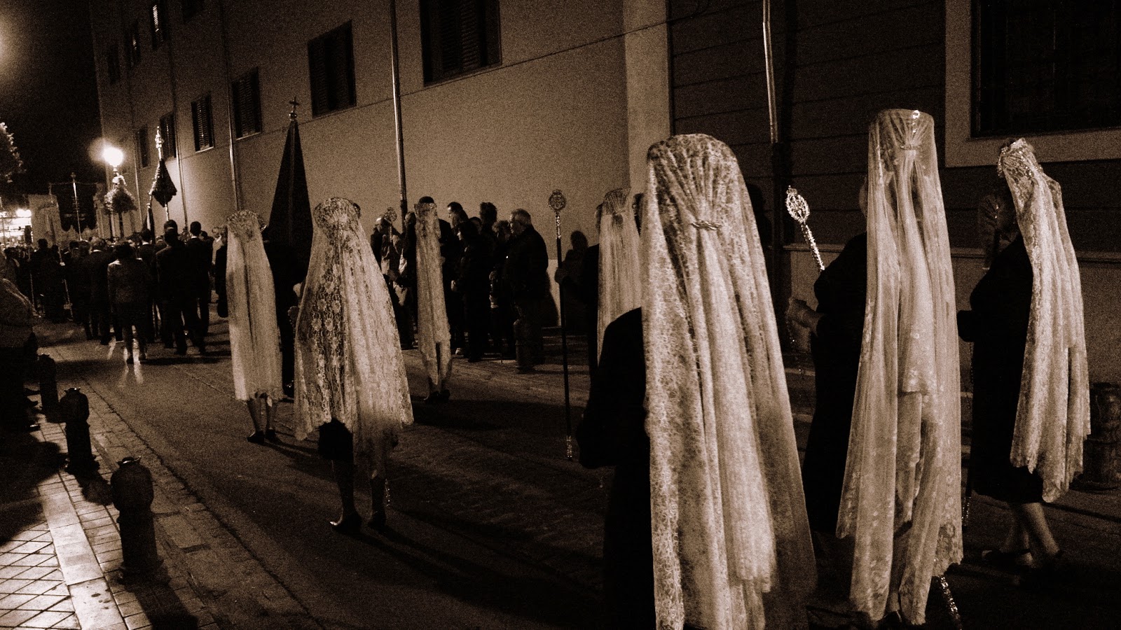 unde ajunși auzim muzică de fanfară. Ce să fie? Un cortegiu de oameni sobri, cu simboluri ce par religioase.