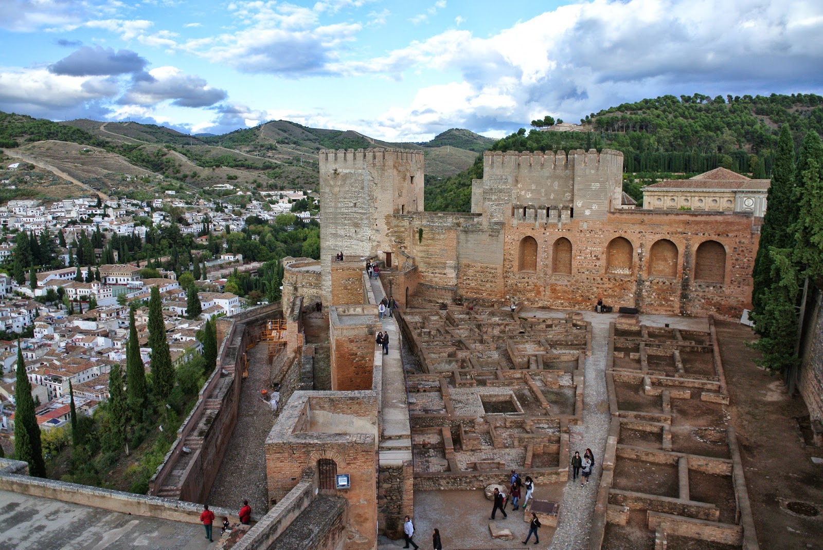 Castel e, întunecat doar pe alocuri. A trebuit să rezervăm bilete la palatul Nazarinean pe internet, cu mult timp înainte, urmând sfatul vărului A. (care de altfel ne-a oferit pe tavă majoritatea punctelor de interes și cazare, pentru care îi mulțumim încă o dată!). Intrarea în palat e la 4, așa că pe la 3 plecăm din tapas bar și urcăm dealul.