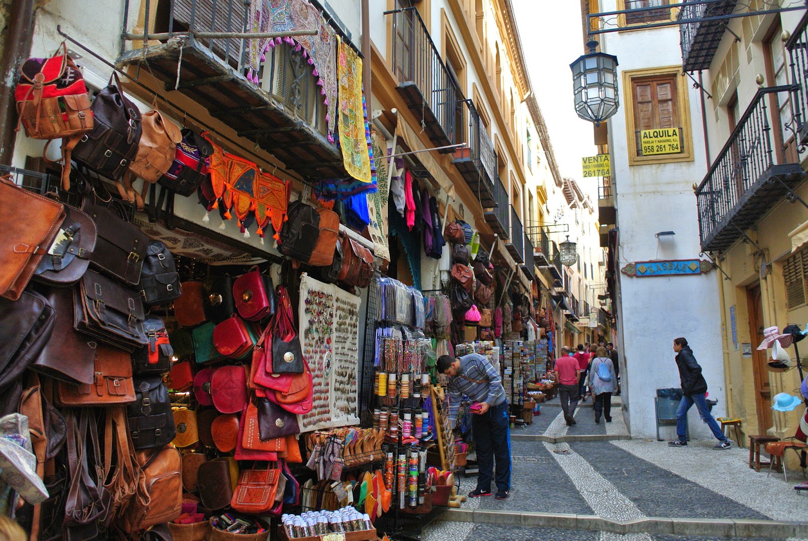 și ne afundăm în cartierul maur, Albayzin. Și aici sunt magazinașe de tip bazar, îmi fac cu ochiul niște șlapi de piele (mi-am uitat papucii de casă acasă), dar zic că mai rezist o zi și-mi iau din piele de Cordoba, hehe,