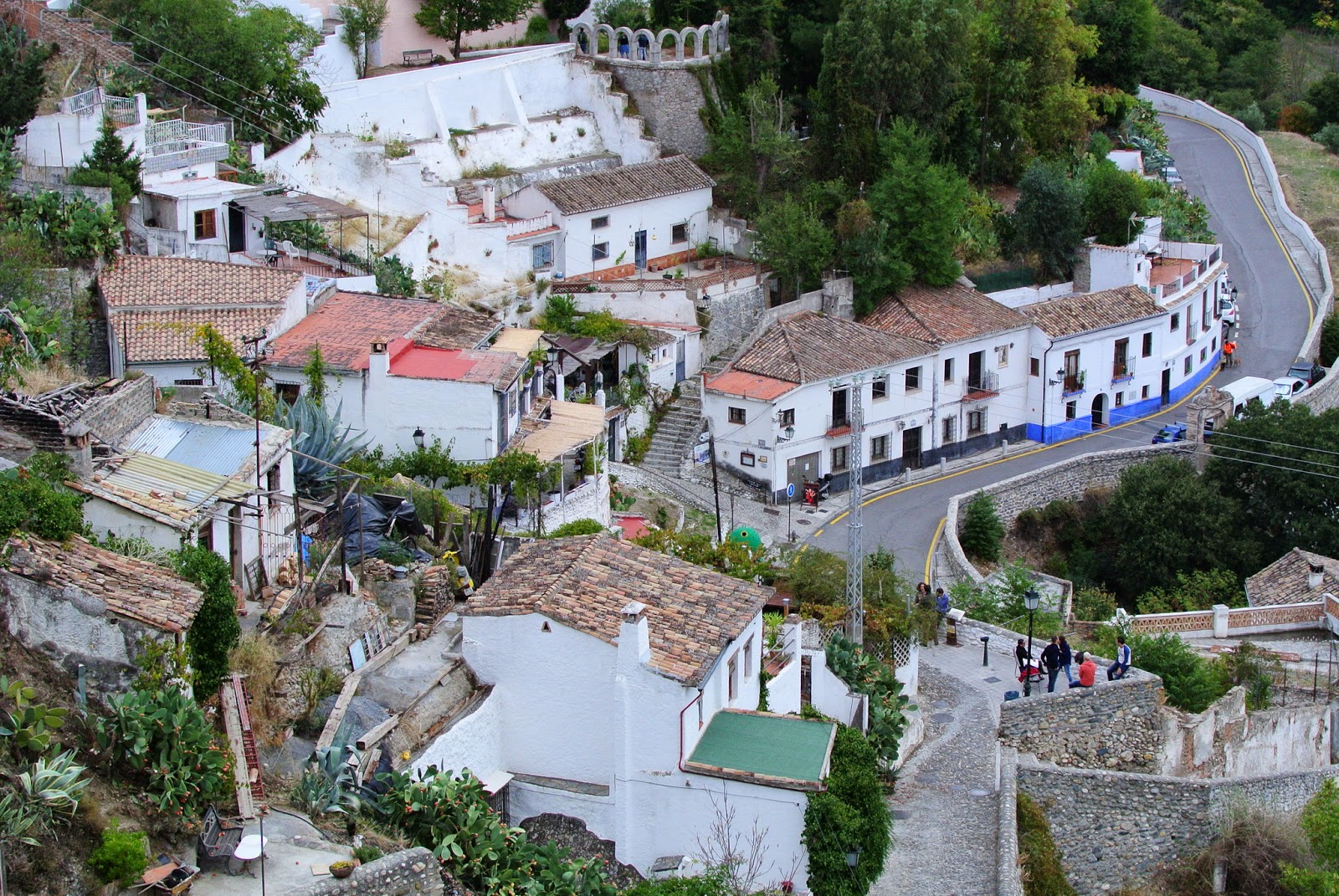 Mhm. Am avut buna inspirație să zic „ne cazăm întâi și apoi vedem” – căci B. ne-a zis că nu merită dați atâția bani, ne descurcăm și de capul nostru. Așa a fost, Albayzinul maur se poate naviga și fără cârmaci. Acum am ajuns la ora 18 și în vecinătatea cartierului țigănesc, și ne întrebăm: să intrăm? O fi un fel de ferentari sau e cartier „istoric” devenit șic? Wikitravel zice că în Sacramonte („muntele sacru”, de la abația cu același nume) sunt locuințe săpate în stâncă, la origine galerii romane, unde au locuit țigani. Nu zice despre cine locuiește acum. Se zice că aici ar fi unul din mai multele locuri unde s-a născut Flamenco – și am văzut într-adevăr multe plachete cu ”școală de flamenco”, și am chiar auzit ”bătând” în unele case.